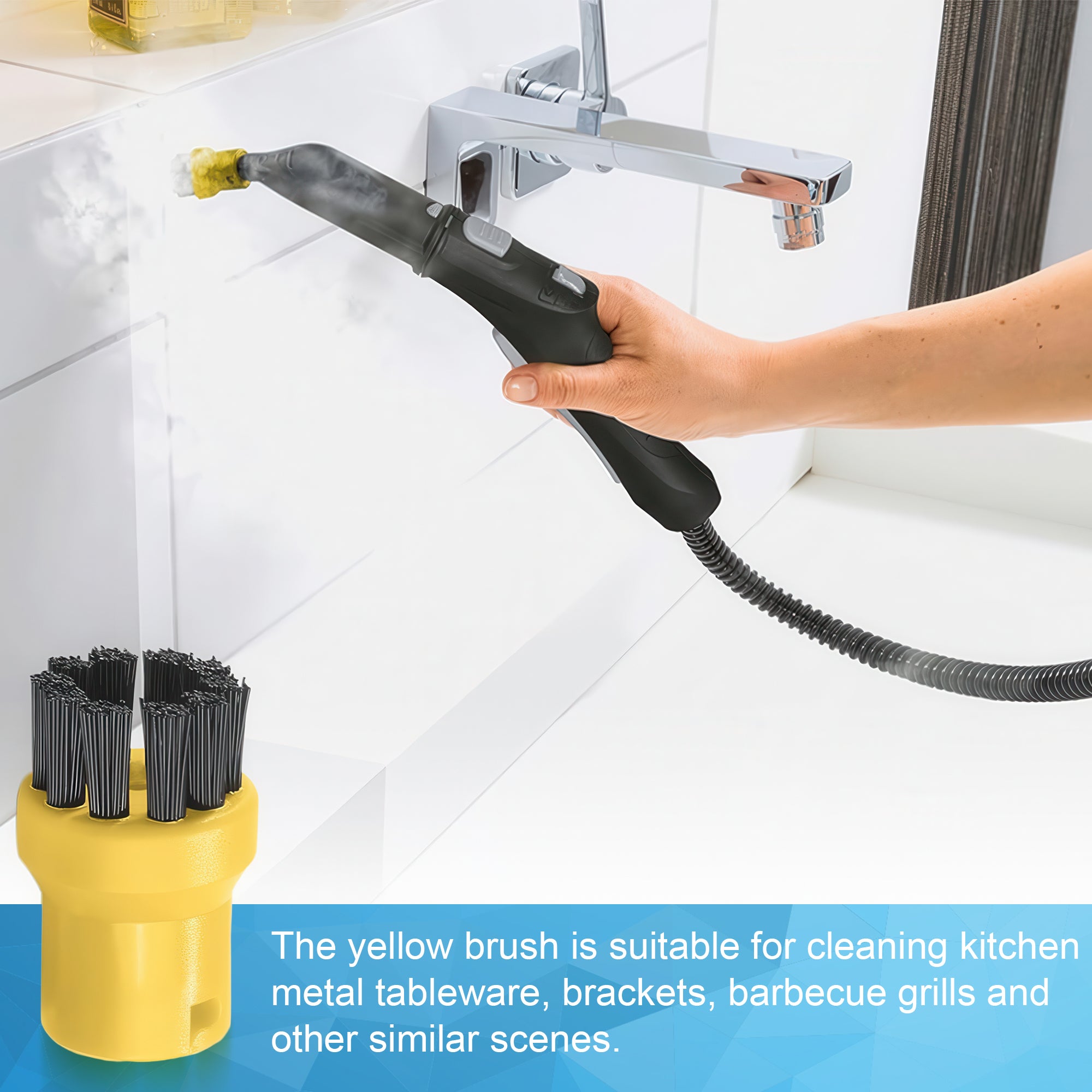 Maak het maximale uit je stoomreiniger met de YONO Opzetstukken geschikt voor Kärcher Stoomreiniger. Deze complete 8-delige borstelset is speciaal ontworpen als hoogwaardig alternatief voor originele Kärcher accessoires en is volledig compatibel met Kärcher SC1, SC2, SC3, SC4, SC5, SC7 en CTK10. Dankzij de perfecte aansluiting klik je de opzetstukken eenvoudig op je stoompistool, zonder speling of verlies van stoomkracht.
