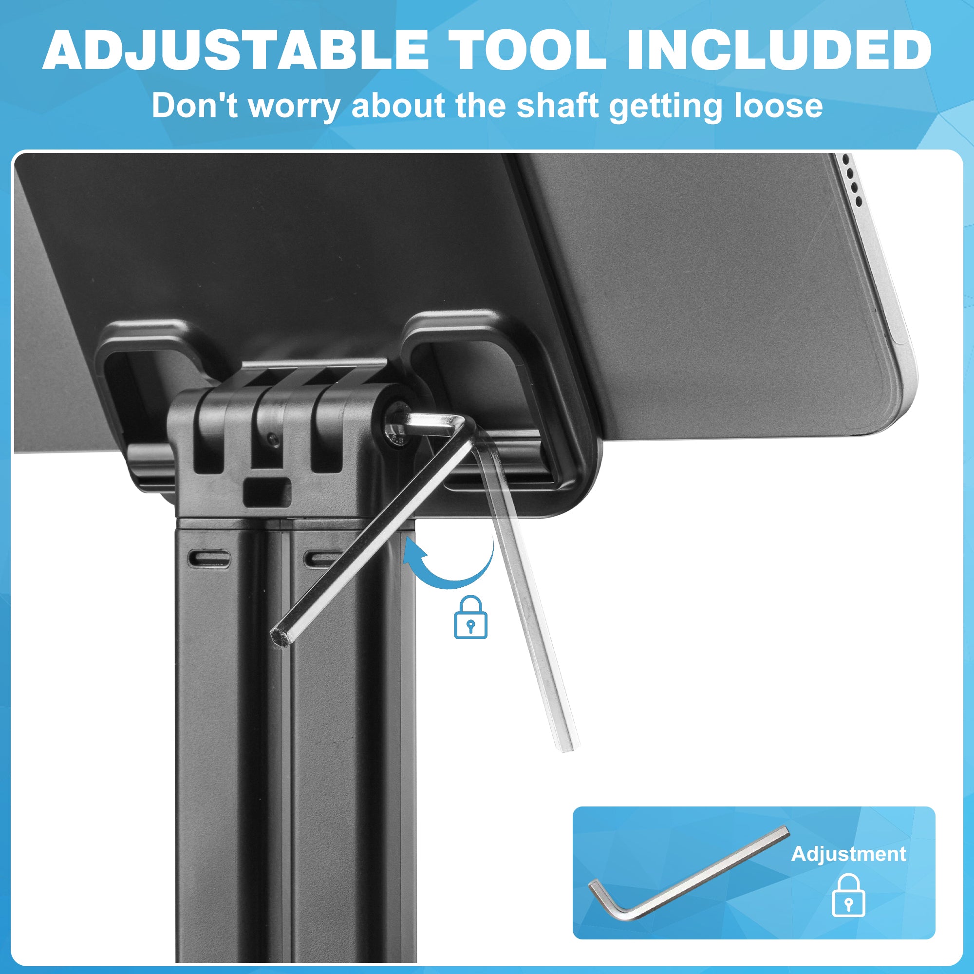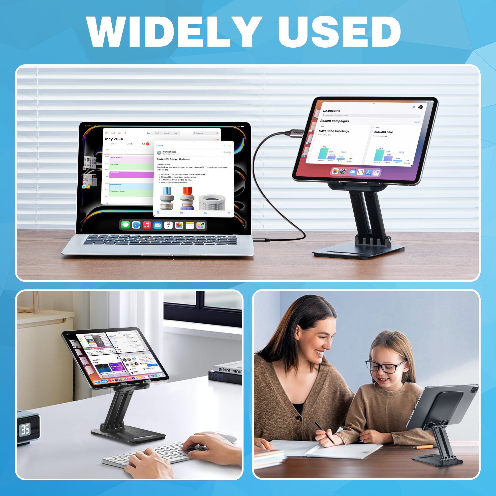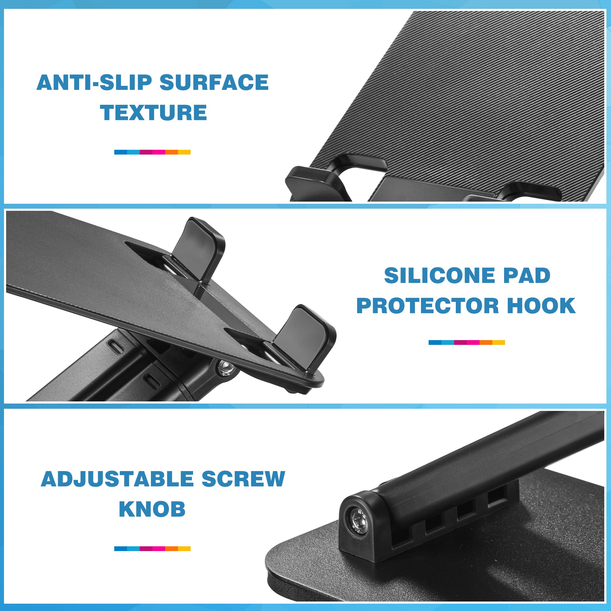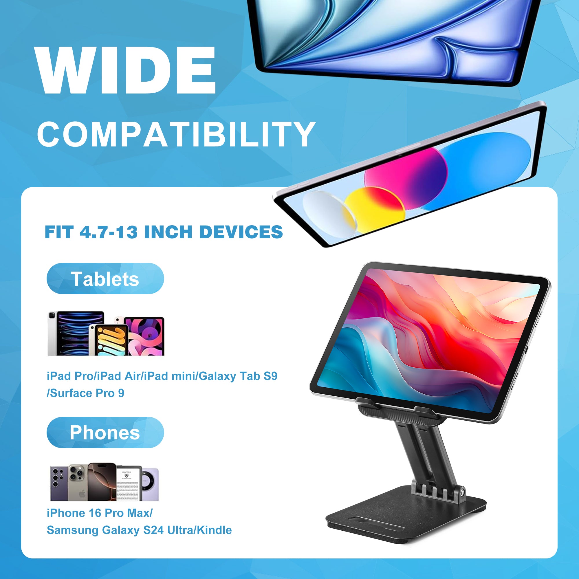 De YONO Universele Tablet Houder Bureau is de perfecte accessoire voor iedereen die zijn tablet of smartphone handsfree wil gebruiken. Deze inklapbare houder is geschikt voor apparaten van 4 tot 13 inch, zoals de iPad, iPad Pro, iPad Mini, Samsung Galaxy Tab, Lenovo Tab en zelfs grotere smartphones. Dankzij zijn stevige metalen constructie (17 x 11,5 cm) en een maximale hoogte van 19 cm biedt deze standaard optimale stabiliteit en duurzaamheid.
