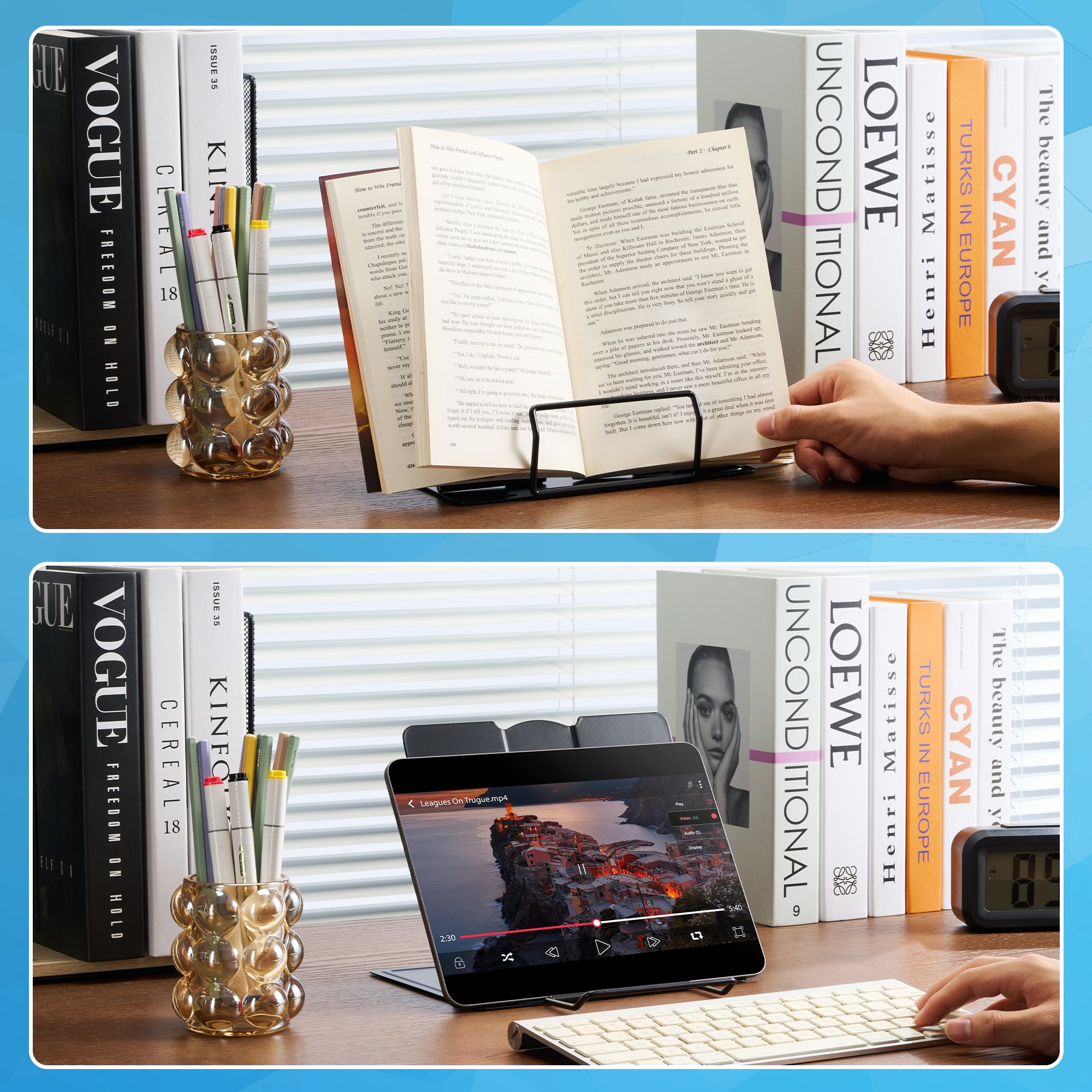 Maak lezen, koken of studeren comfortabeler met de YONO Boekenstandaard Metaal – een stevige, verstelbare en opvouwbare standaard voor boeken, kookboeken, tablets en meer. Met zijn robuuste metalen ontwerp, 6 instelbare leeshoeken en handige anti-slip pads is dit de perfecte oplossing om je boek op ooghoogte te houden en je handen vrij te maken. Of je nu een kookboek wilt openhouden tijdens het koken, je studieboeken overzichtelijk wilt plaatsen of comfortabel een roman wilt lezen – de YONO Boekenstandaard biedt stabiliteit, gebruiksgemak en een stijlvol compact design.