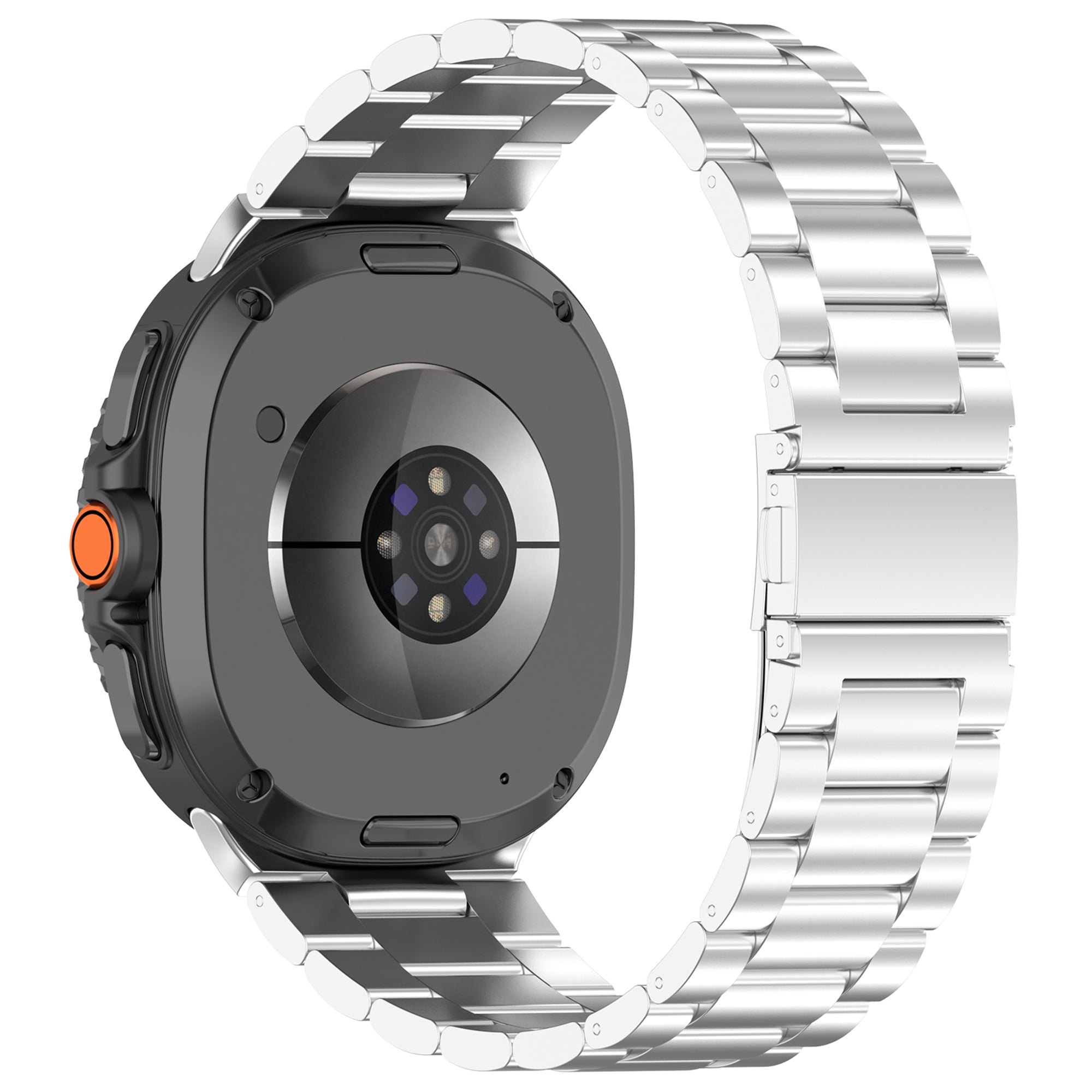 Het bandje is vervaardigd uit hoogwaardig roestvrij staal (RVS) en voelt solide aan om de pols. Dankzij de glad afgewerkte schakels ligt het bandje comfortabel op de huid en blijft het prettig dragen, ook bij langdurig gebruik. De klassieke schakelstructuur sluit perfect aan bij de Galaxy Watch 8 en geeft je smartwatch een stijlvolle, horloge-achtige look.