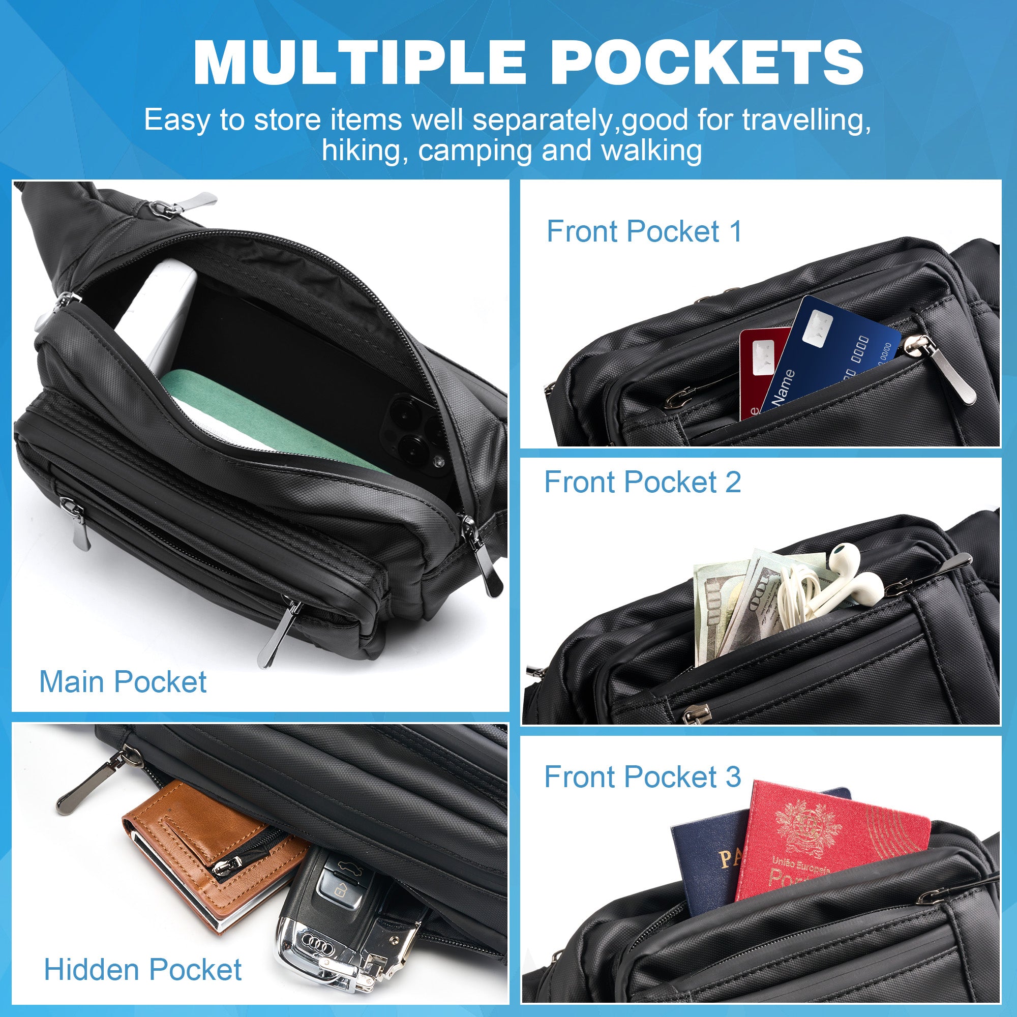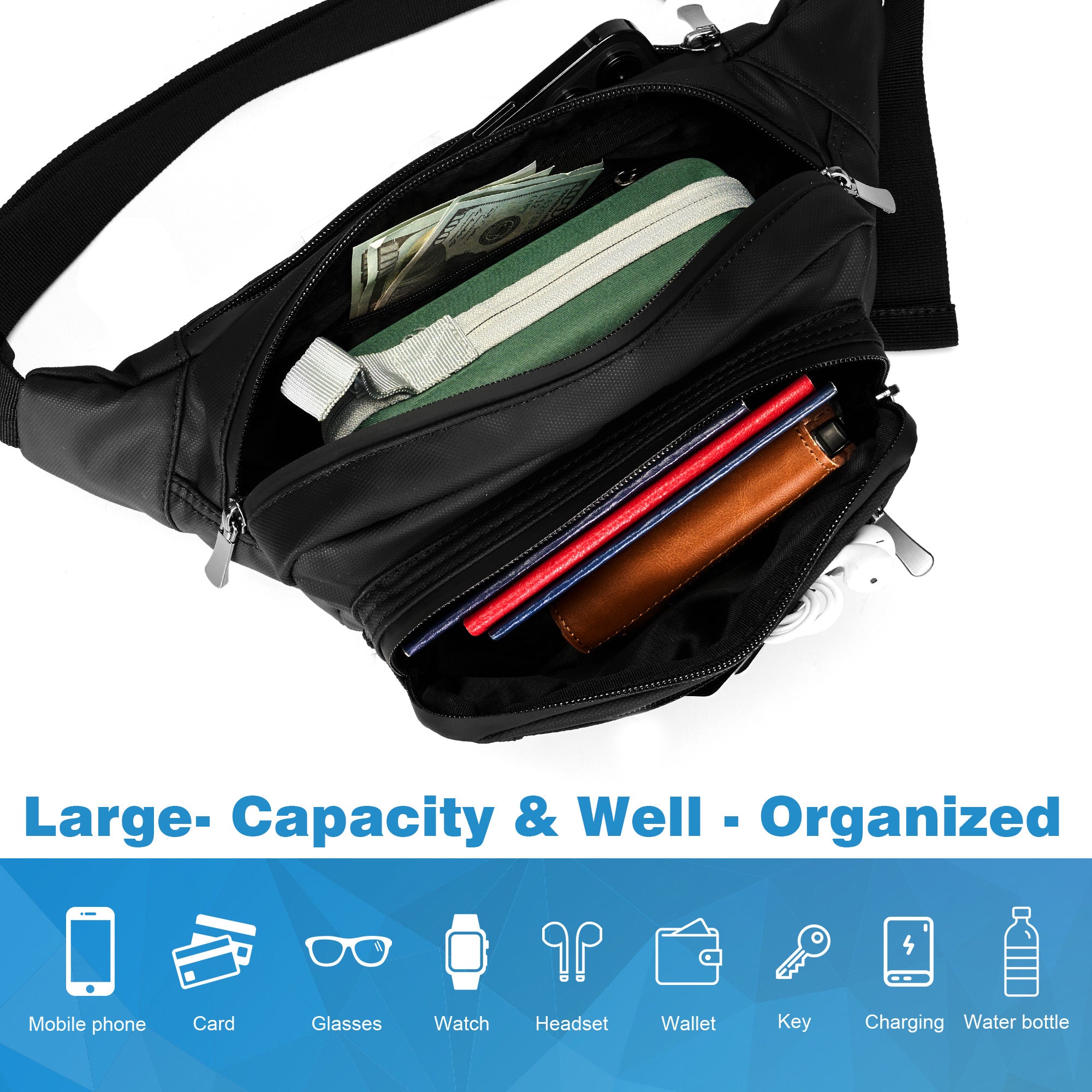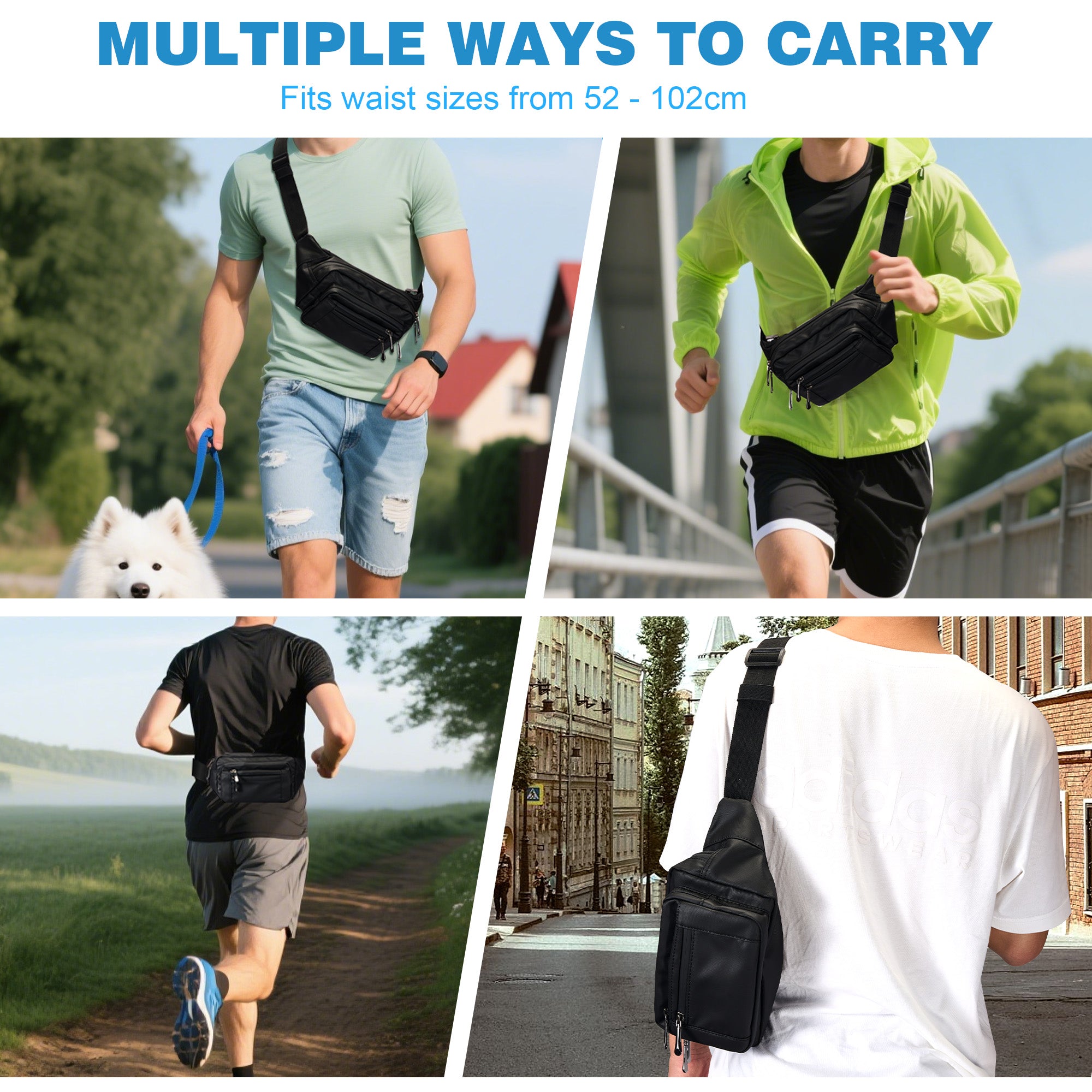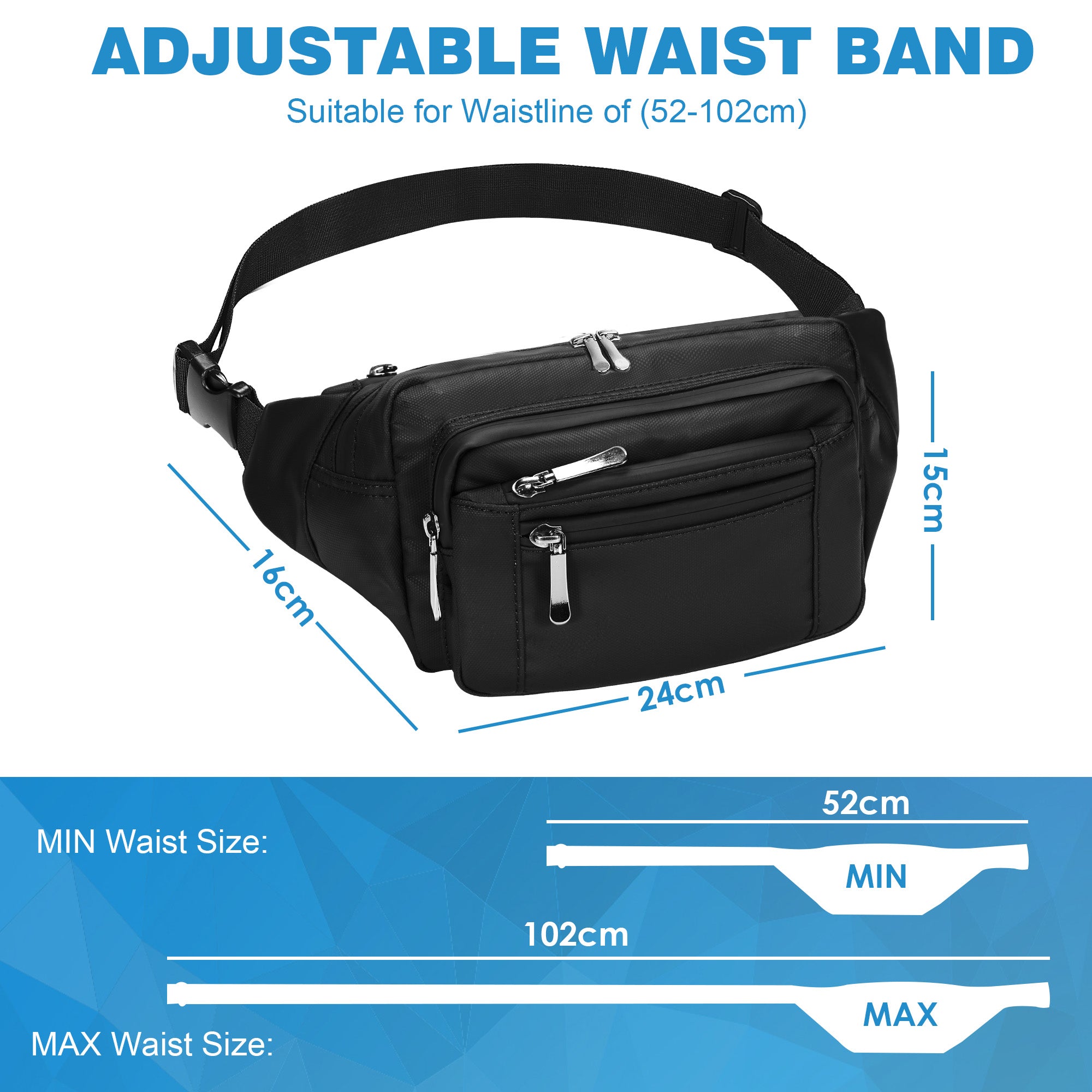 De verstelbare band maakt deze fanny pack geschikt voor een taille van 52 cm tot 102 cm, waardoor hij comfortabel draagt voor zowel heren als dames. Draag hem klassiek als heuptas of trendy crossbody voor extra veiligheid onderweg.