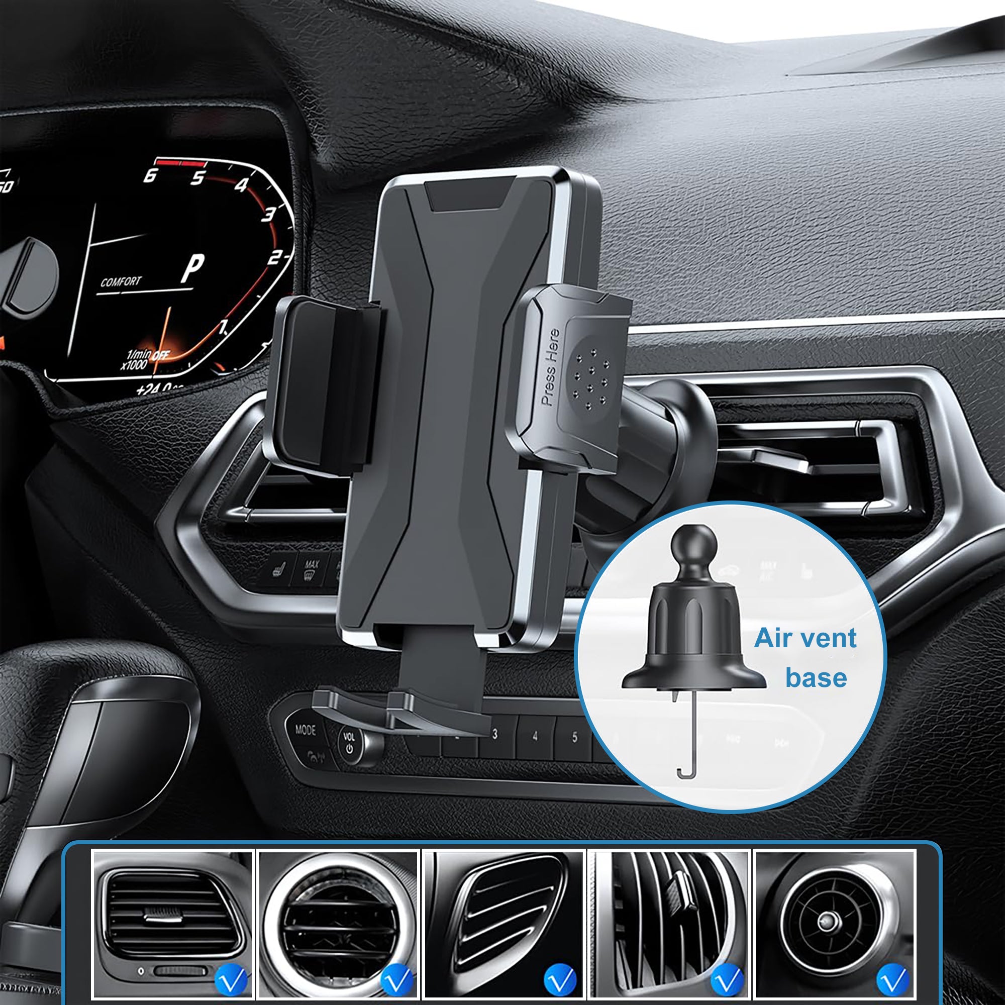 De YONO Telefoonhouder voor in de auto is dé oplossing voor iedereen die veilig én handsfree wil rijden. Of je nu een korte rit maakt of dagelijks onderweg bent: je telefoon moet goed zichtbaar zijn, zonder dat het gevaarlijk wordt of steeds wegglijdt. Deze houder is speciaal ontworpen voor bevestiging aan het ventilatierooster, met een slim quick release-systeem, een verstelbaar mechanisme en een stevig, universeel ontwerp dat geschikt is voor vrijwel elke smartphone.