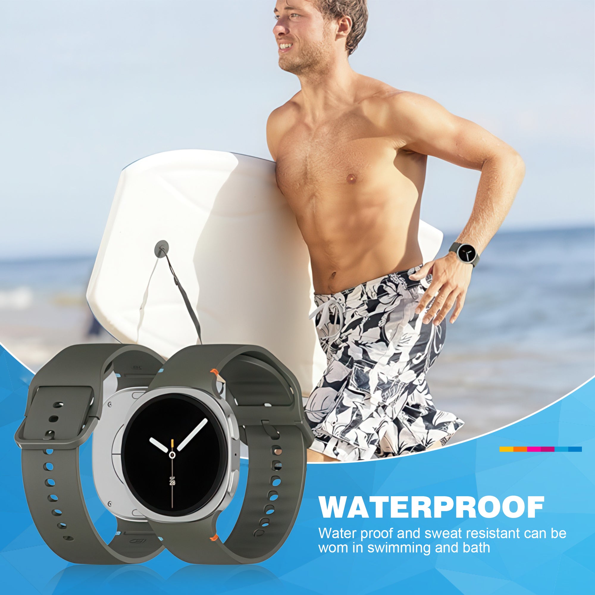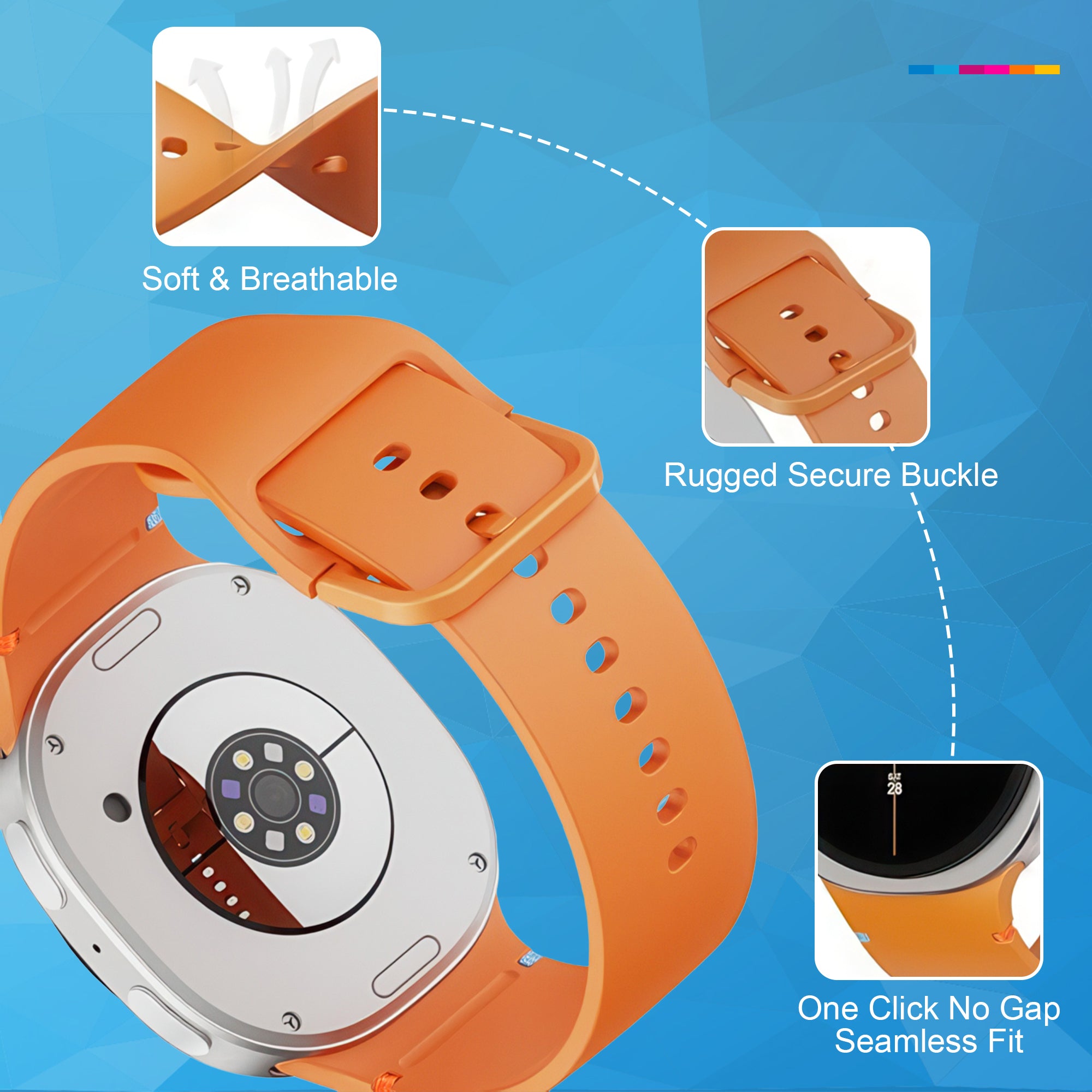 Elk bandje is gemaakt van hoogwaardig, flexibel siliconen materiaal dat zacht aanvoelt op de huid en prettig blijft dragen, zelfs bij langdurig gebruik. Het huidvriendelijke materiaal voorkomt irritatie en knellen, waardoor de bandjes geschikt zijn voor dagelijks dragen én intensieve sportmomenten.