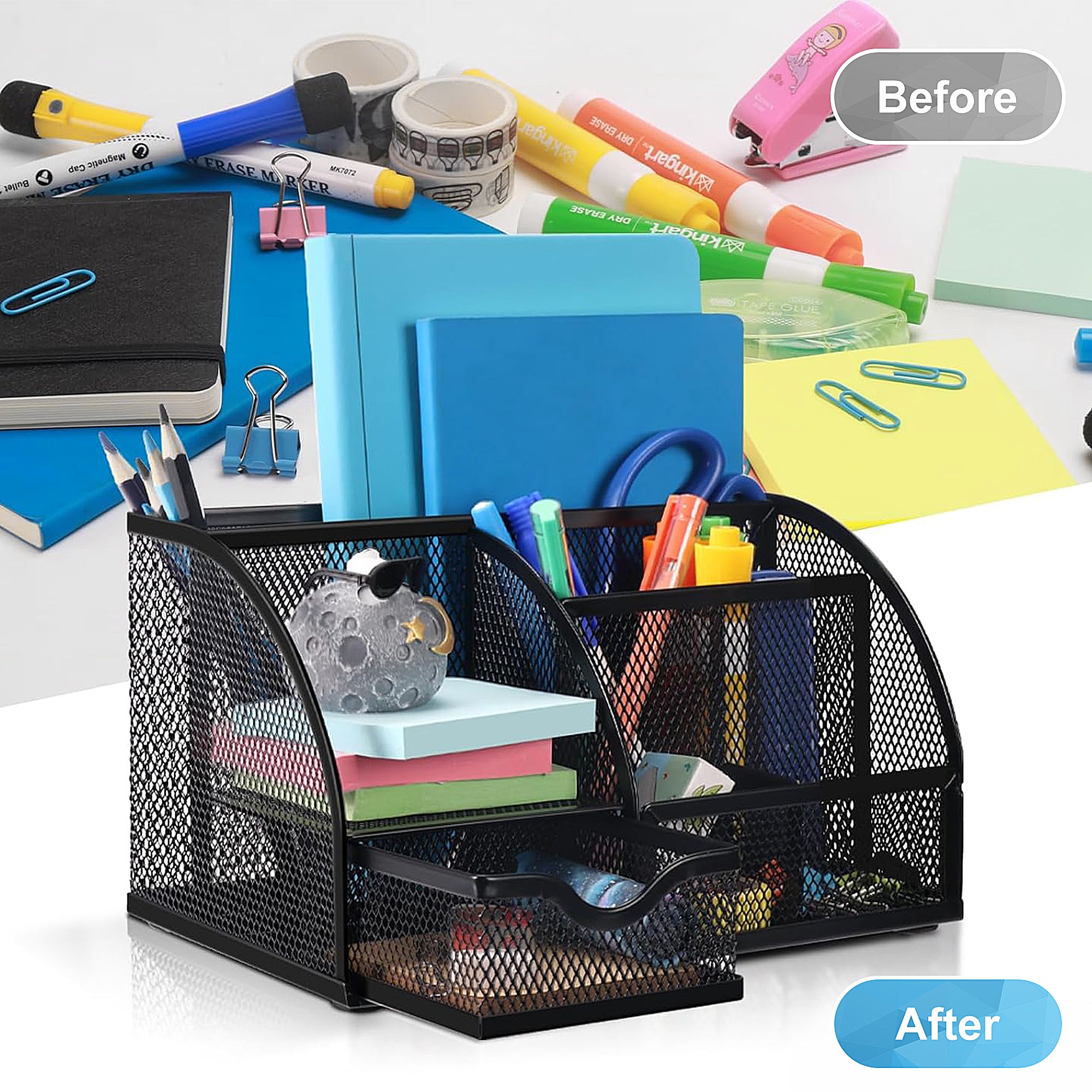 Houd je bureau netjes, overzichtelijk en stijlvol met de YONO Bureau Houder Organizer. Deze praktische organizer is gemaakt van duurzaam geweven metaal en combineert functionaliteit met een moderne uitstraling. Perfect voor op kantoor, thuis of in je studeerkamer.