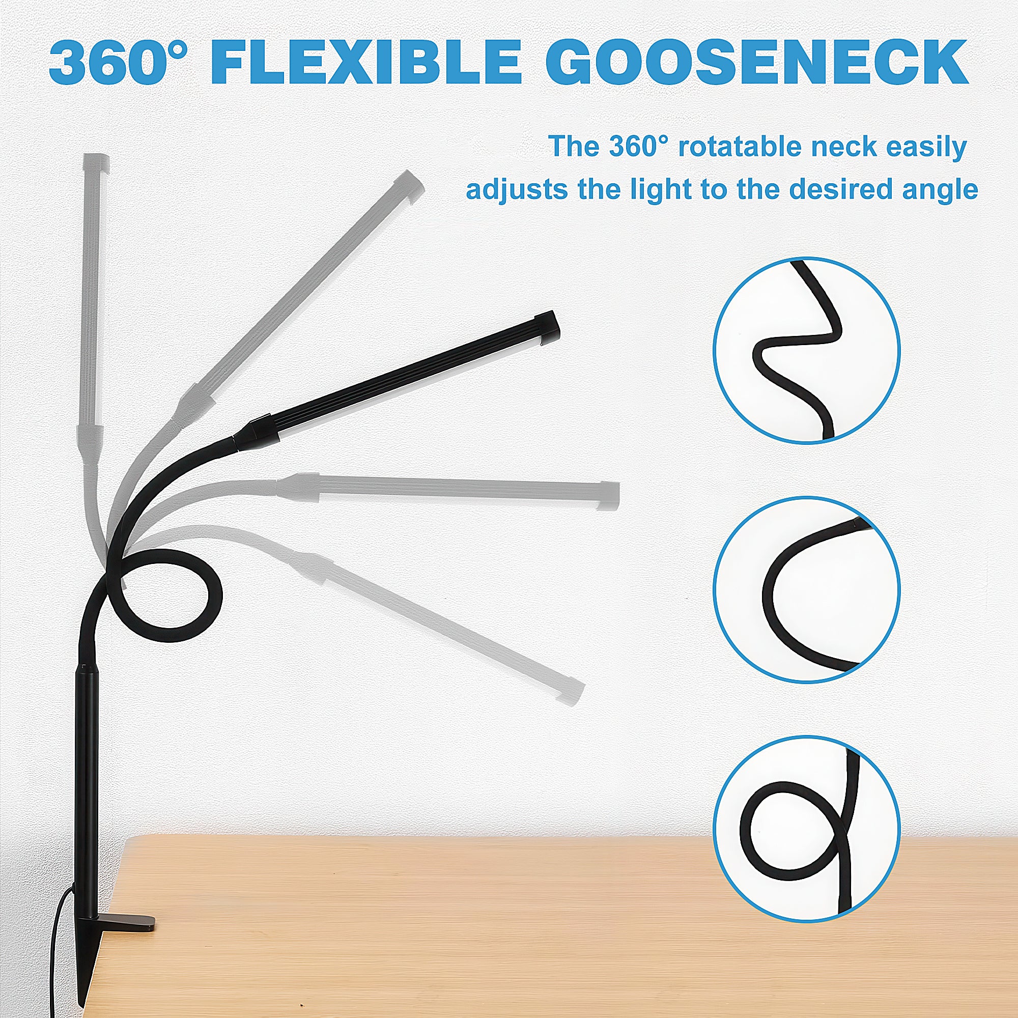 Dankzij de flexibele, 360° verstelbare hals richt je het licht precies waar jij het nodig hebt — ideaal voor werk, studie of nachtlezen.