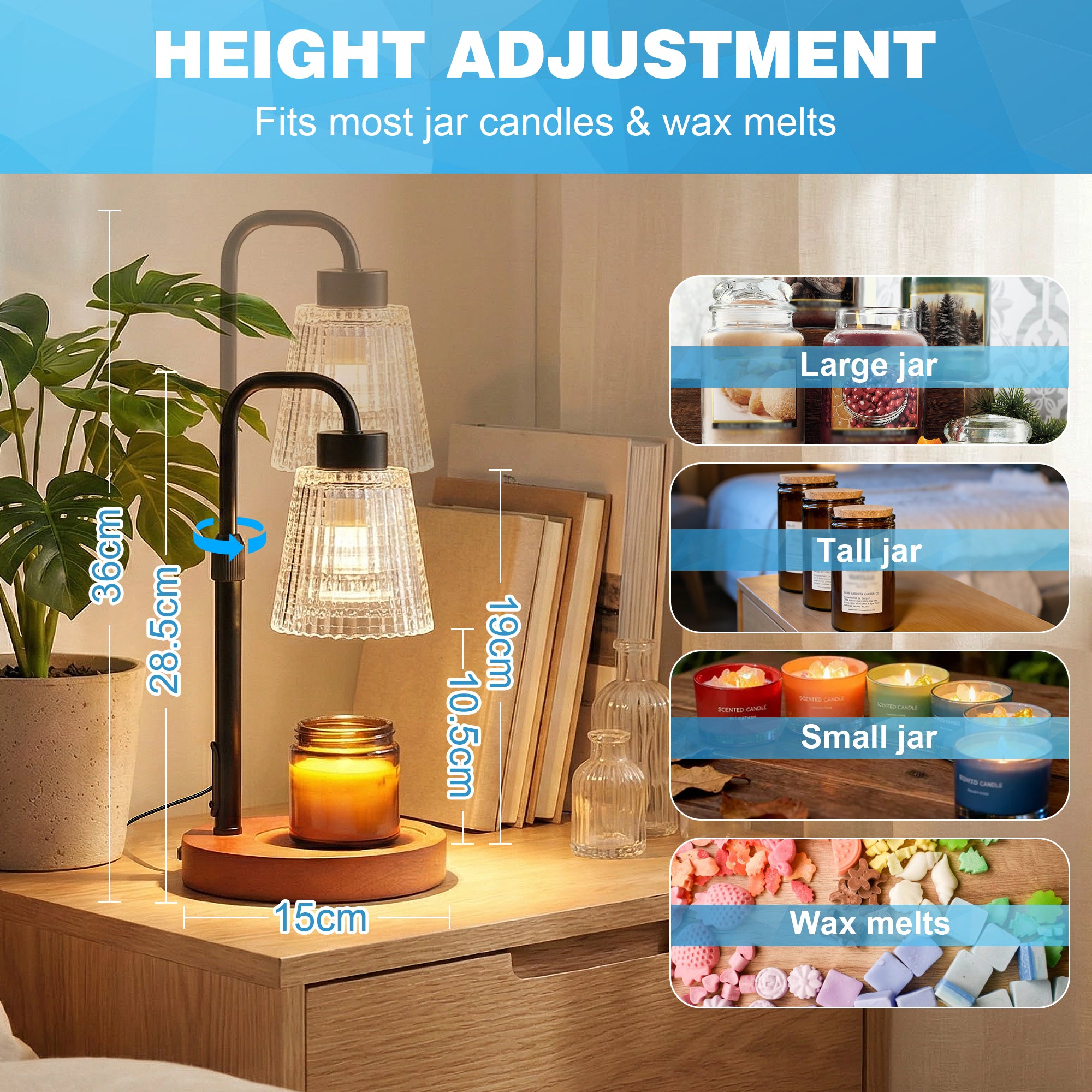 De YONO Candle Warmer Lamp is de veilige en stijlvolle manier om optimaal te genieten van je favoriete geurkaarsen. In plaats van een open vlam verwarmt deze kaarsenwarmer de kaars gelijkmatig van bovenaf, waardoor de geur langzaam en consistent vrijkomt. Zo creëer je een warme, ontspannen sfeer in huis, zonder rook, roet of brandgevaar.