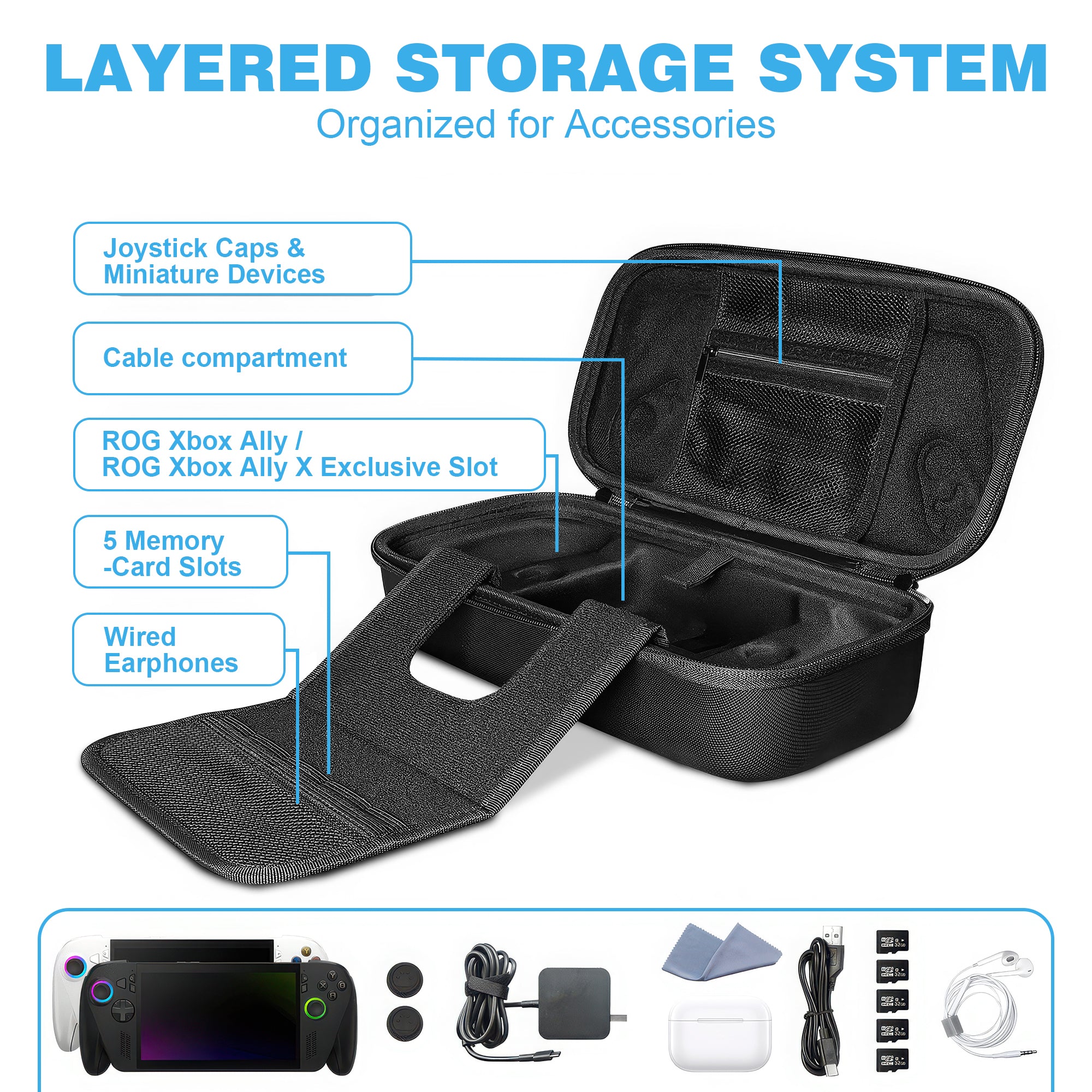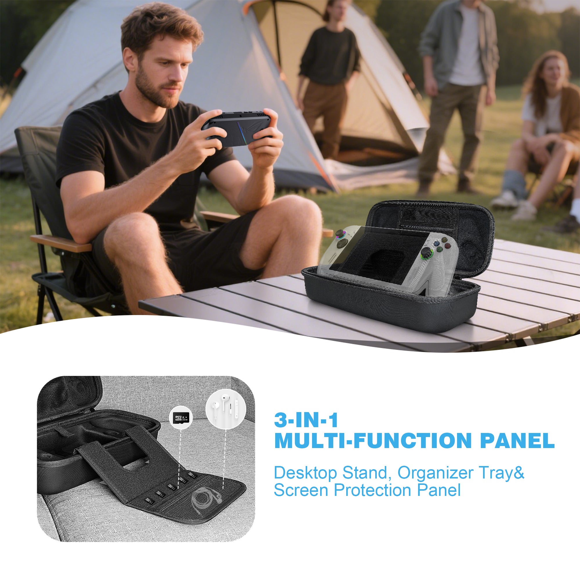 Ben jij op zoek naar de beste beschermhoes geschikt voor de ASUS ROG Ally of ROG Ally X? Met de YONO Premium Travel Case geef je jouw handheld console de ultieme bescherming tijdens dagelijks gebruik, onderweg of op reis. Deze stevige en volledig uitgeruste beschermcase is ontworpen voor gamers die hun console veilig, overzichtelijk en met stijl willen vervoeren. De case combineert een waterdichte en vlekwerende PU-buitenzijde met een schokabsorberende EVA-tussenlaag en een zachte fleece binnenvoering, waardoor je ROG Ally optimaal beschermd blijft tegen vallen, stoten, krassen en externe druk. Daarnaast beschikt de hoes over een slim ingedeeld opbergvak voor accessoires, zoals kabels, oordopjes, joystick caps en meerdere memory cards. Dankzij het handige handvat, het uitklapbare middenpaneel met playstand functie en de militaire valkwaliteit is dit ROG Ally X hoesje een complete en duurzame reisoplossing. Zoek je dus een stevige, veilige en veelzijdige case voor jouw ASUS ROG Ally of ROG Ally X, dan is de YONO Case dé ideale keuze voor maximale bescherming en gebruiksgemak.