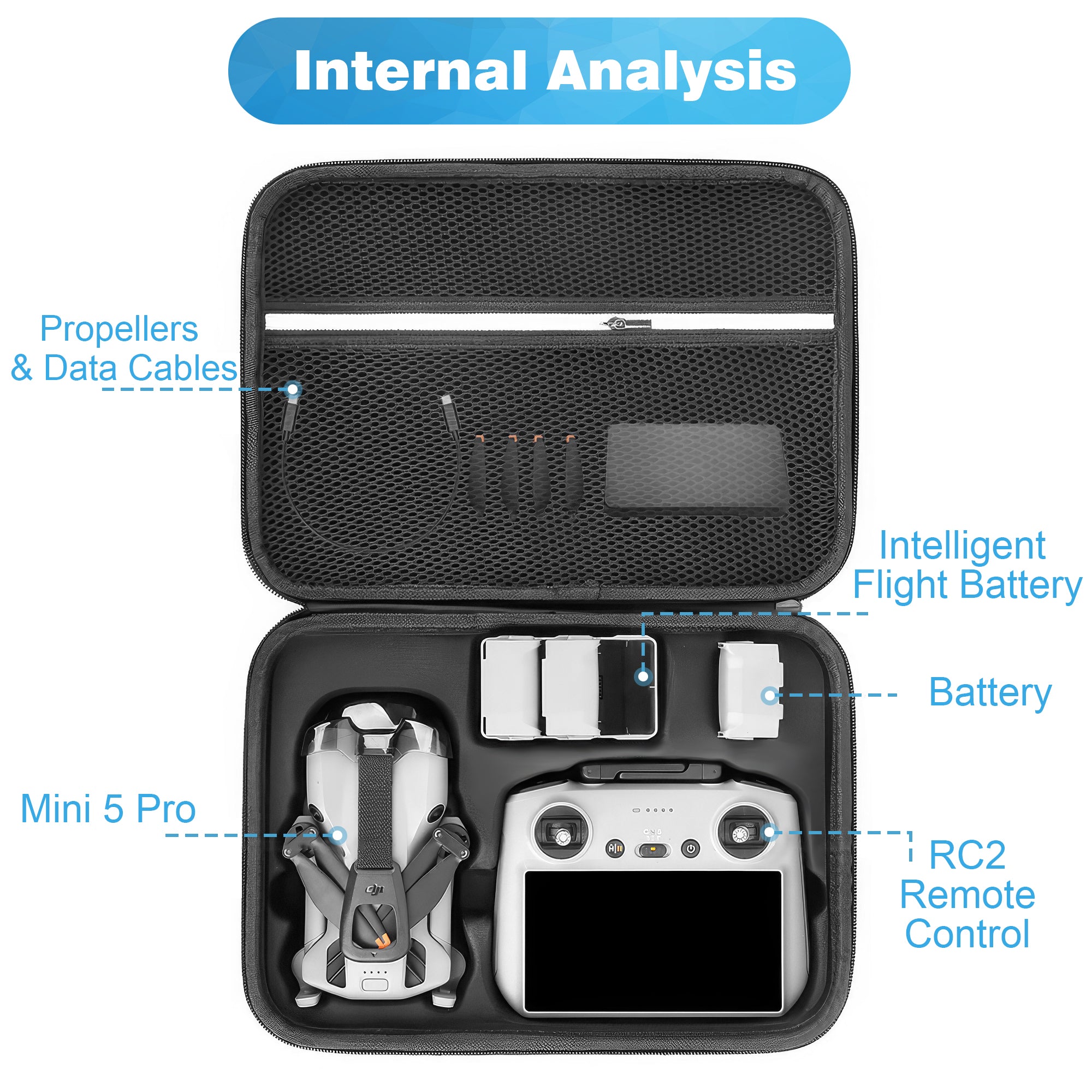 De YONO Koffer voor DJI Mini 5 Pro is de ideale opbergtas voor iedereen die zijn drone en accessoires veilig, overzichtelijk en comfortabel wil meenemen. Deze stevige hardcase is speciaal ontworpen voor de DJI Mini 5 Pro en biedt ruimte voor de drone, afstandsbediening, batterijen, kabels en andere accessoires. Dankzij het schokbestendige, spatwaterdichte ontwerp is je apparatuur optimaal beschermd.