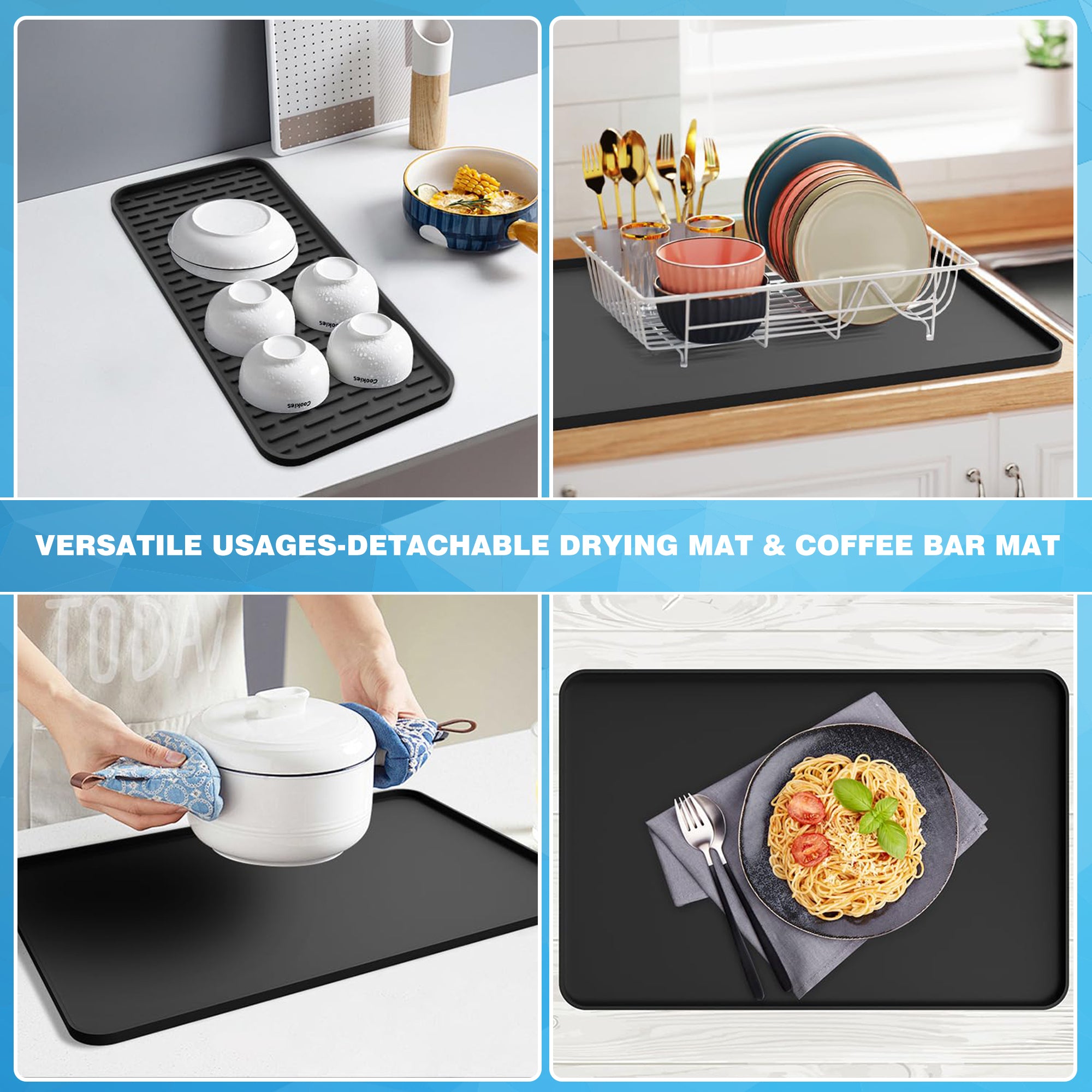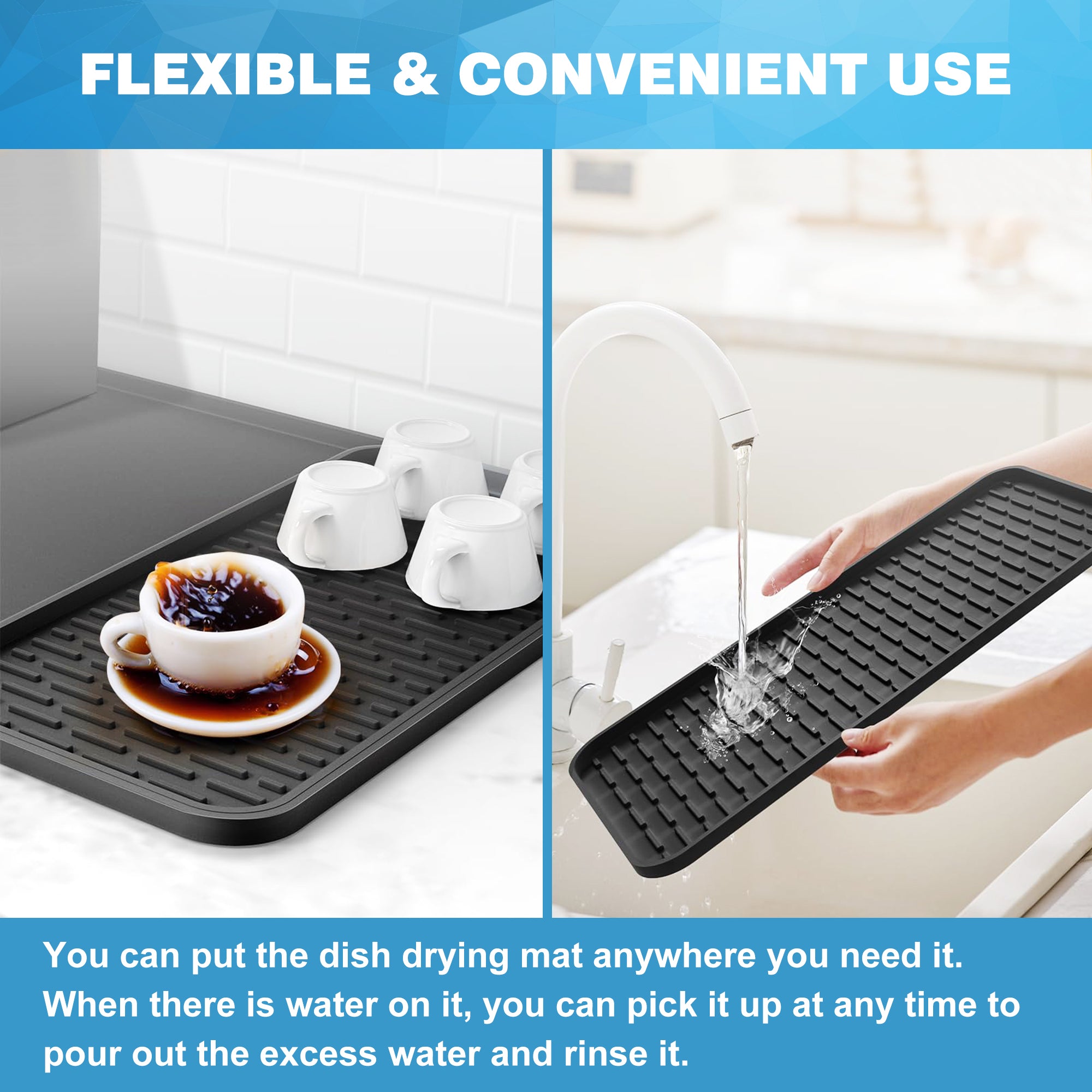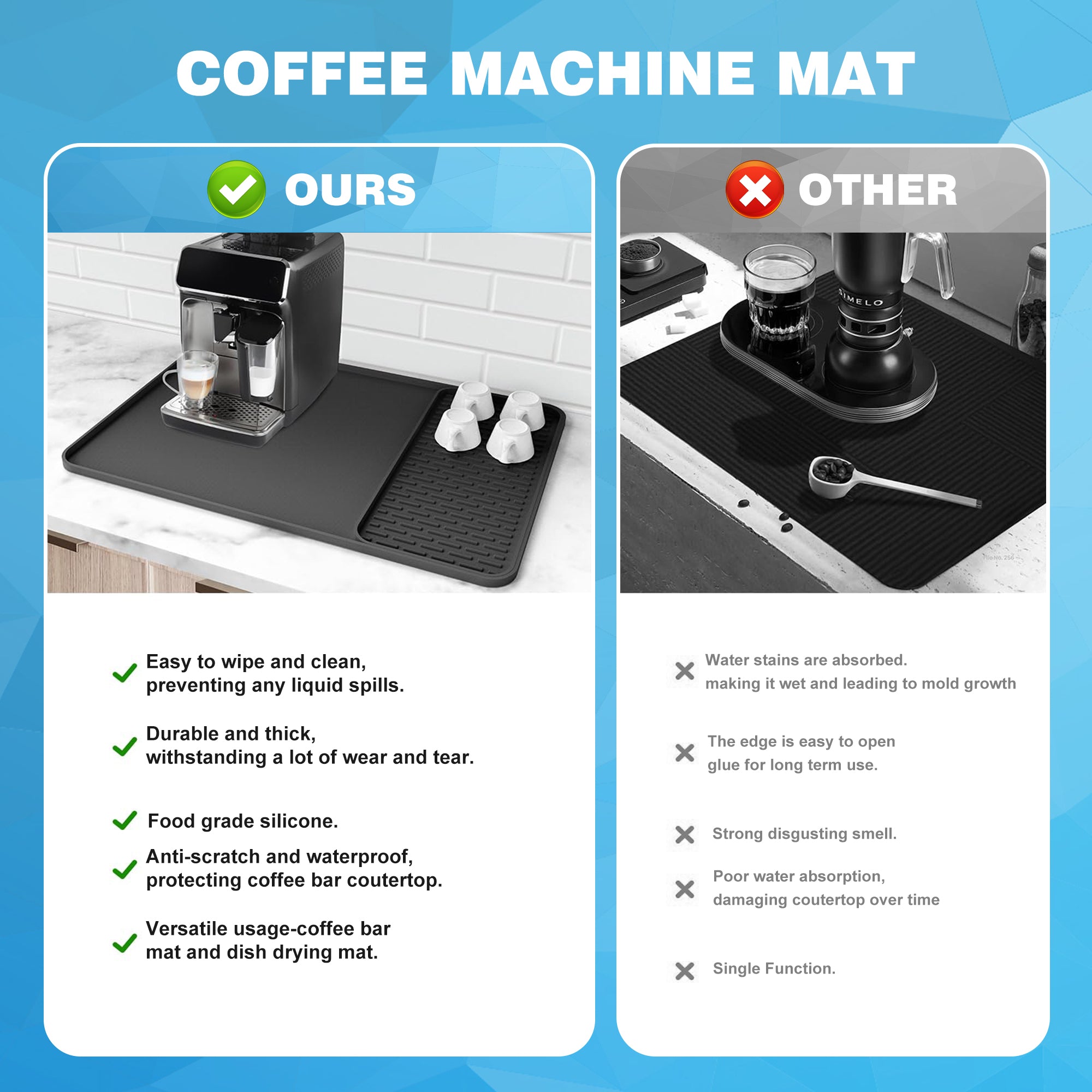 Breng orde, netheid en comfort in je keuken met de YONO Siliconen Afdruipmat XL. Deze extra grote 60 × 40 cm mat is ontworpen om jouw koffiemachine, afwas én keukenblad optimaal te beschermen. Dankzij het speciale drooggedeelte van 39,5 × 19 cm, met verhoogde golvende ribbels, kan nat servies efficiënt en hygiënisch drogen, zonder nattigheid op je aanrecht. Gemaakt van hoogwaardig, voedselveilig siliconen, is deze multifunctionele mat flexibel, duurzaam, waterproof én krasbestendig. De antislip onderkant zorgt ervoor dat de mat stevig op zijn plek blijft liggen, zelfs bij intensief gebruik.