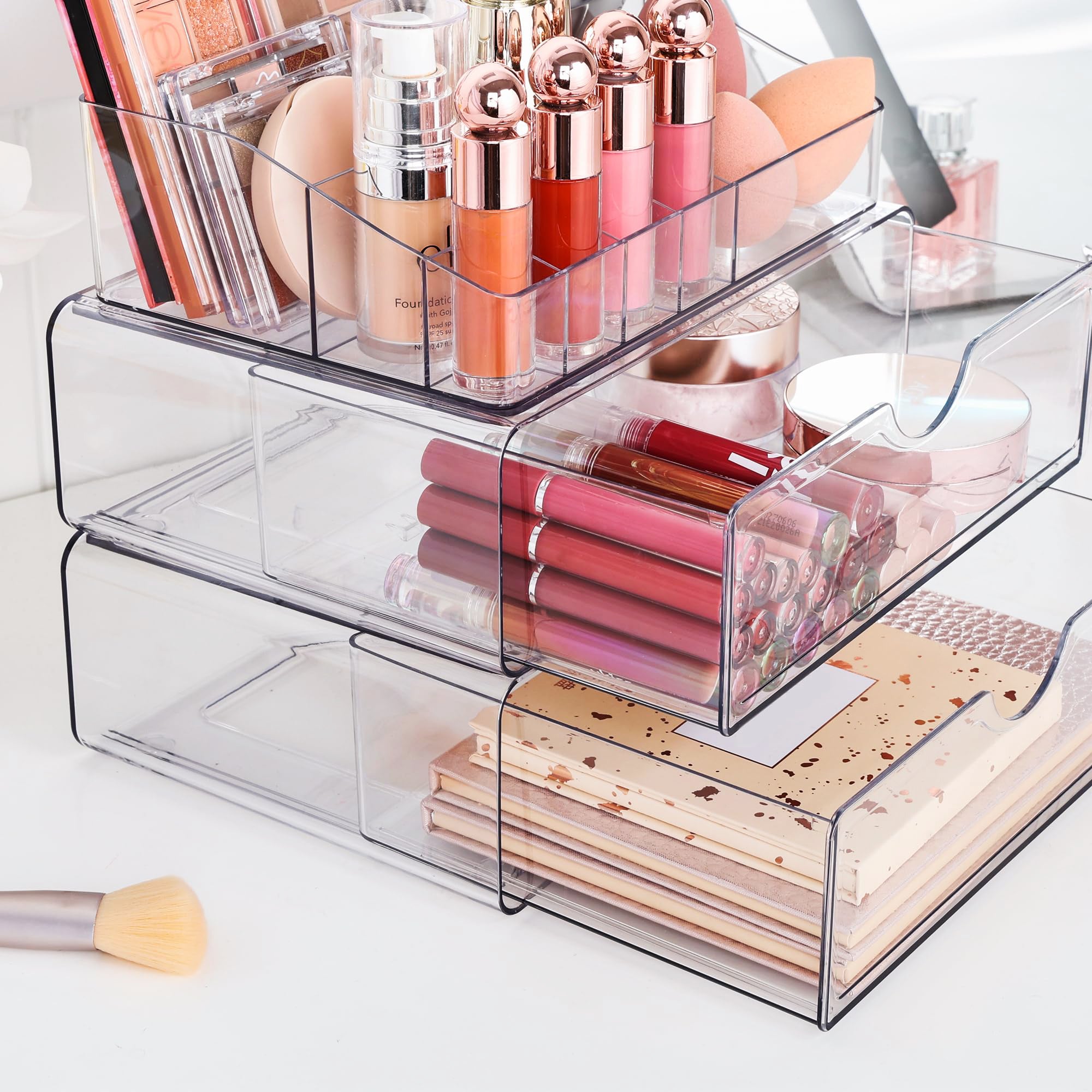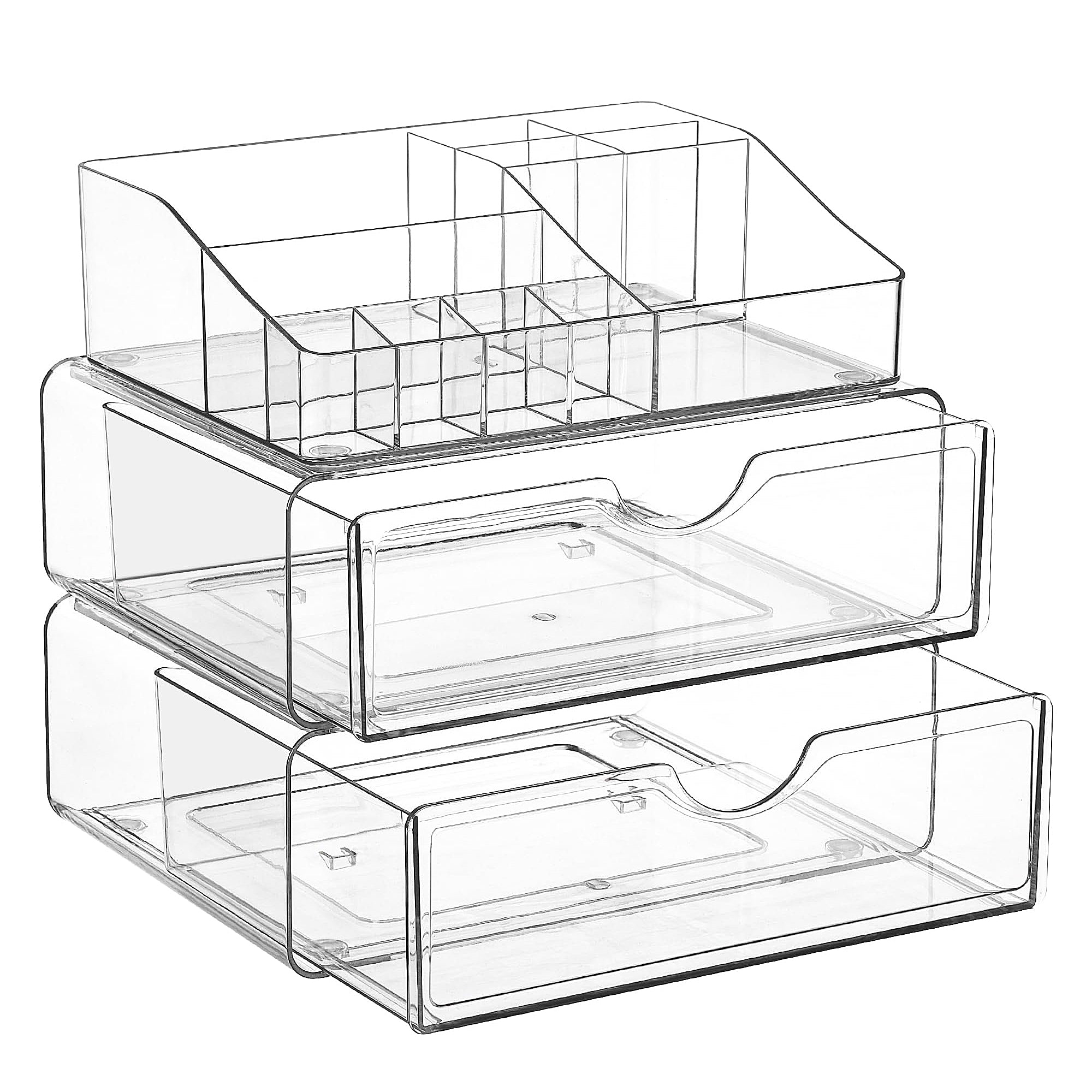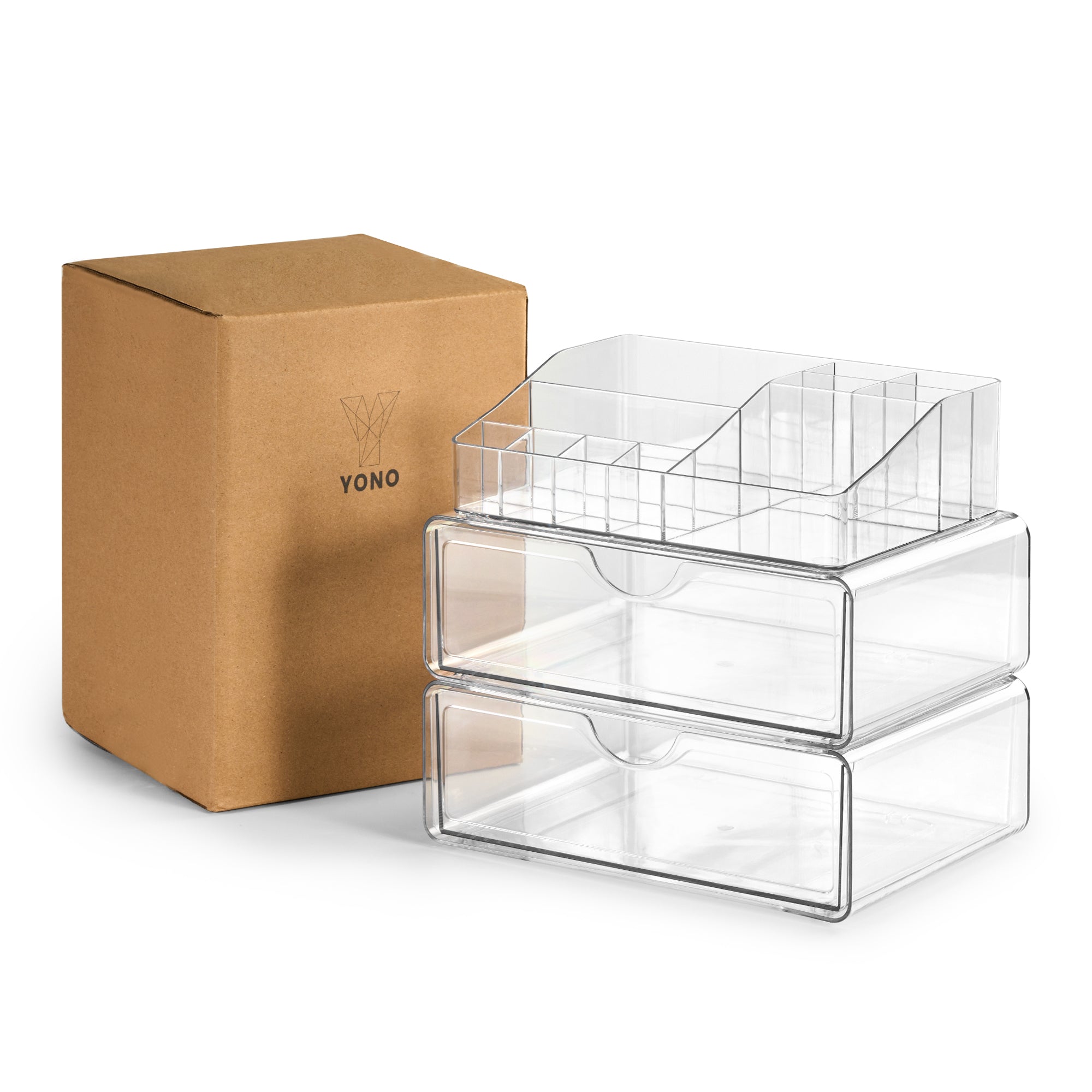 Houd je make-up, skincare en parfum altijd netjes geordend met de YONO Make-Up Organizer met Lades. Deze stijlvolle transparante organizer is ideaal voor iedere beauty-liefhebber die overzicht en gemak wil creëren op de kaptafel of in de badkamer. Met 11 vakken en 2 ruime lades biedt deze organizer voldoende ruimte voor al je make-up producten, nagellak, sieraden of verzorgingsartikelen. Het tracklock systeem zorgt er voor dat de lades niet uit de organizer kunnen vallen. Dankzij de compacte afmeting van 24x17,5x22,5 cm past hij perfect op elk oppervlak, zonder te veel ruimte in te nemen. Gemaakt van hoogwaardig kunststof en uitgevoerd in stijlvol wit, past de organizer moeiteloos in elk interieur.