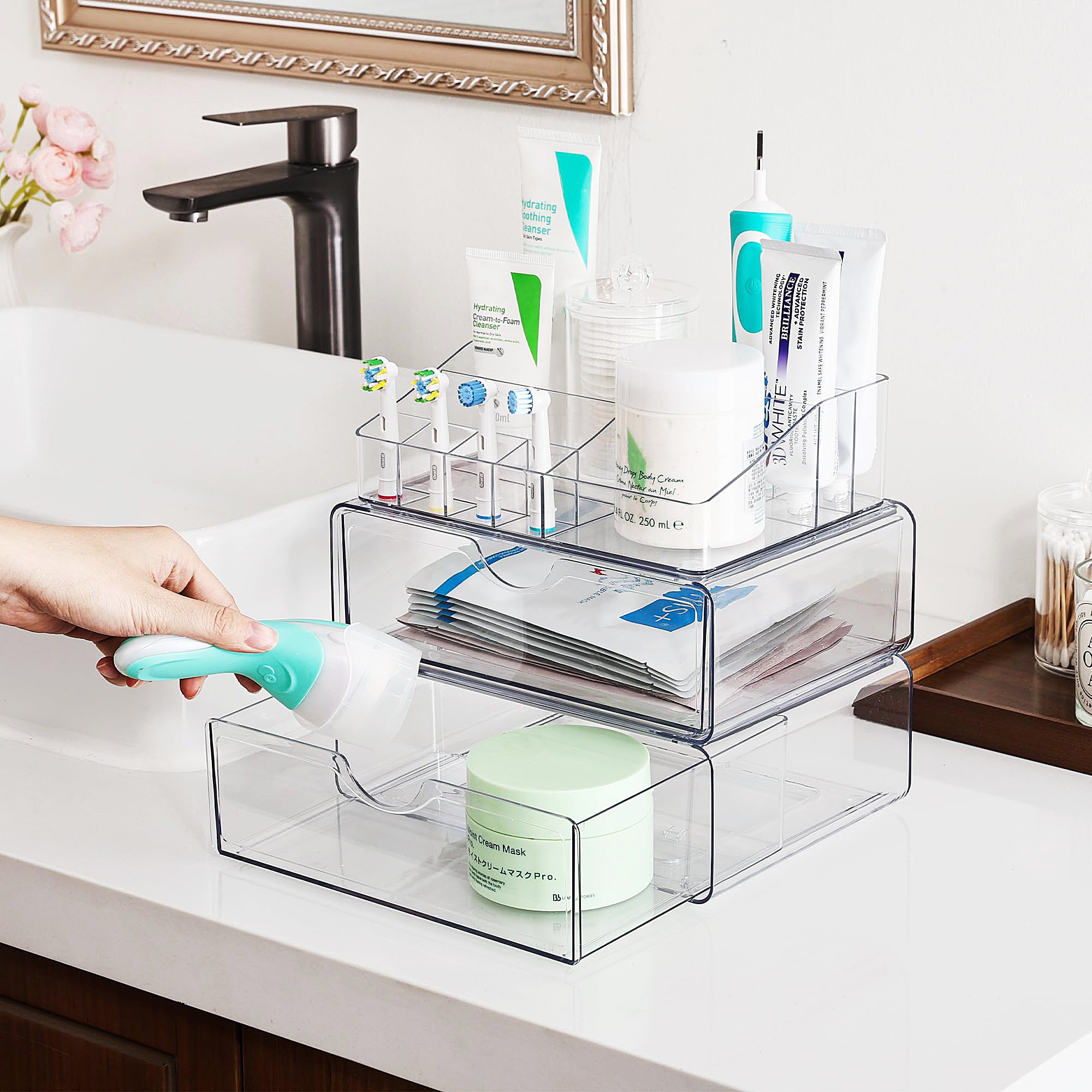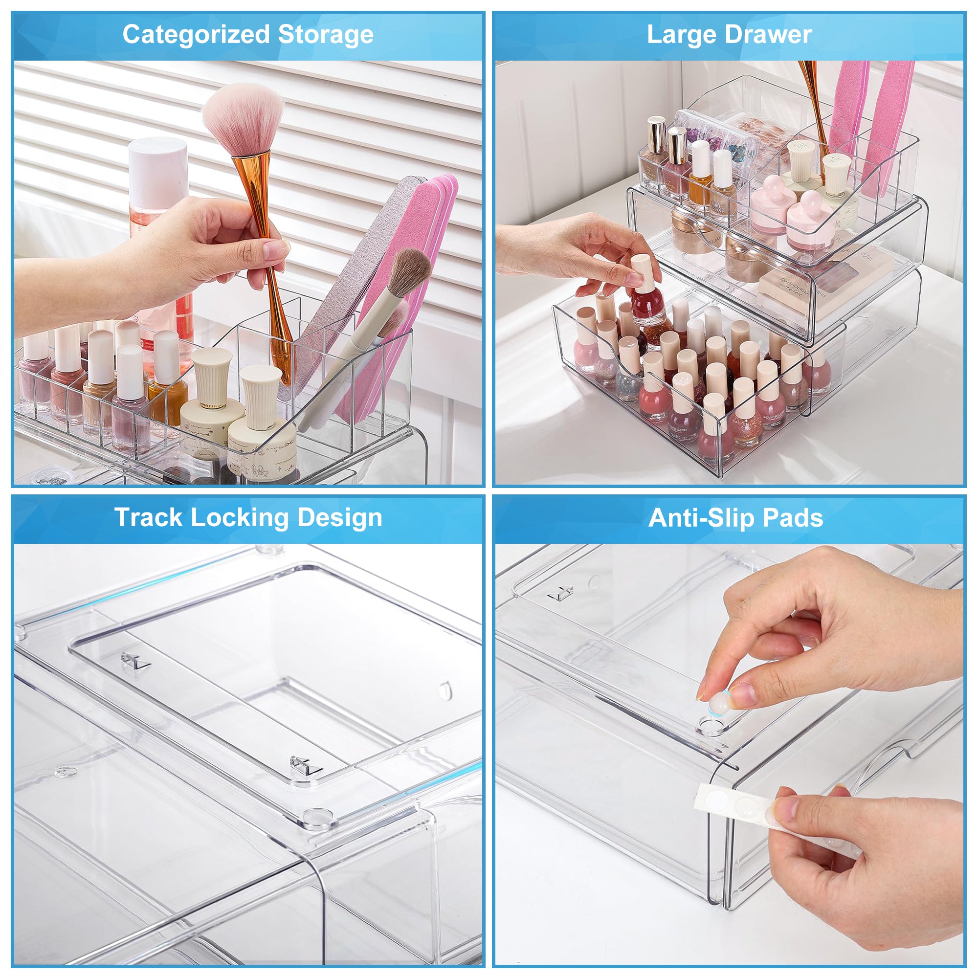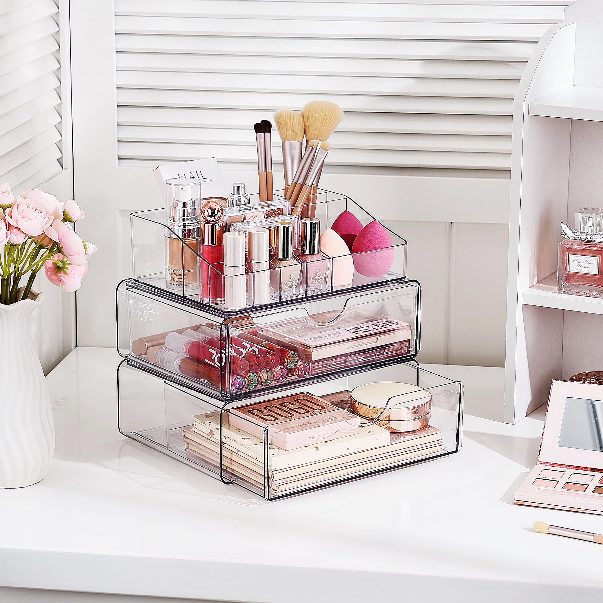 Houd je make-up, skincare en parfum altijd netjes geordend met de YONO Make-Up Organizer met Lades. Deze stijlvolle transparante organizer is ideaal voor iedere beauty-liefhebber die overzicht en gemak wil creëren op de kaptafel of in de badkamer. Met 11 vakken en 2 ruime lades biedt deze organizer voldoende ruimte voor al je make-up producten, nagellak, sieraden of verzorgingsartikelen. Het tracklock systeem zorgt er voor dat de lades niet uit de organizer kunnen vallen. Dankzij de compacte afmeting van 24x17,5x22,5 cm past hij perfect op elk oppervlak, zonder te veel ruimte in te nemen. Gemaakt van hoogwaardig kunststof en uitgevoerd in stijlvol wit, past de organizer moeiteloos in elk interieur.