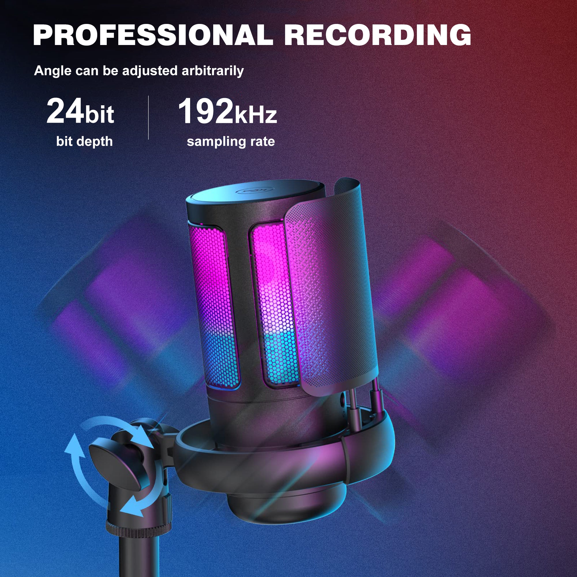 Ga voor kraakhelder geluid tijdens gamen, streamen of online meetings met de YONO Professionele Microfoon Staand. Deze hoogwaardige USB-microfoon is speciaal ontworpen voor gamers, streamers en creators die topkwaliteit geluid willen combineren met gebruiksgemak en een strakke RGB-look.
