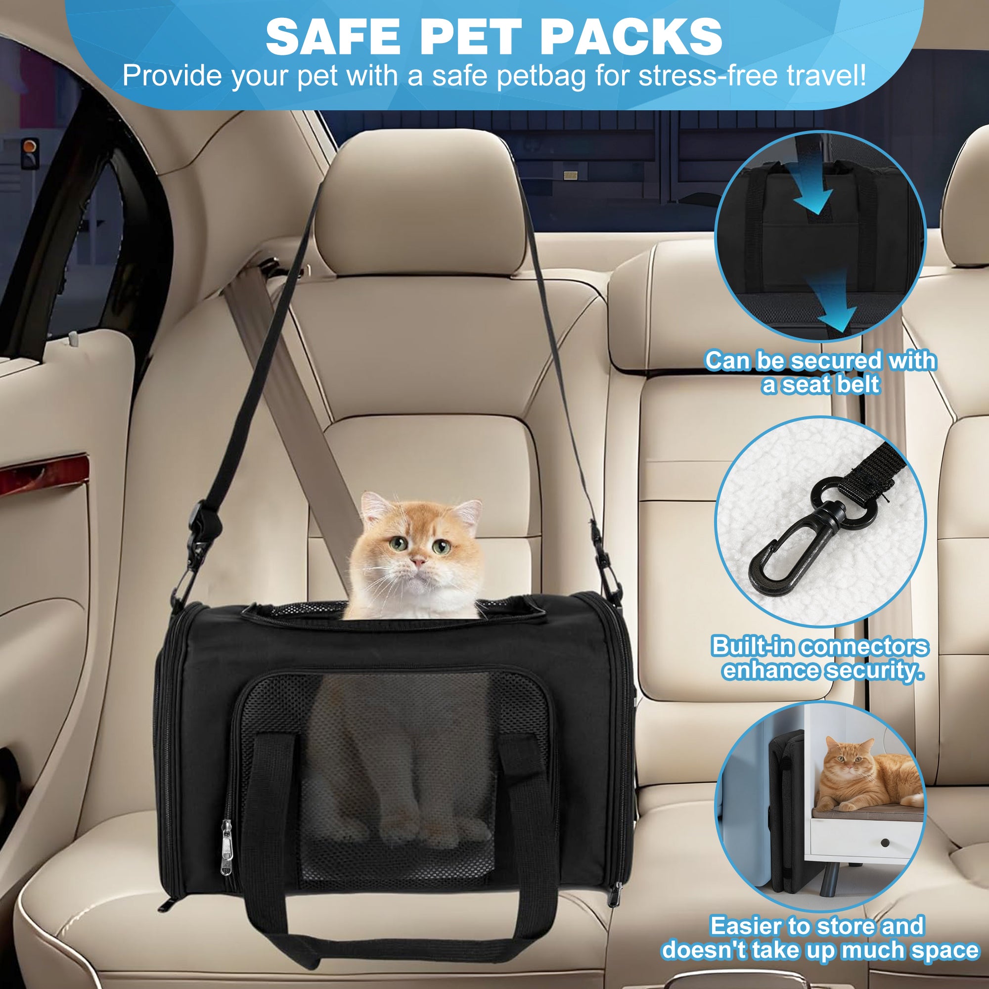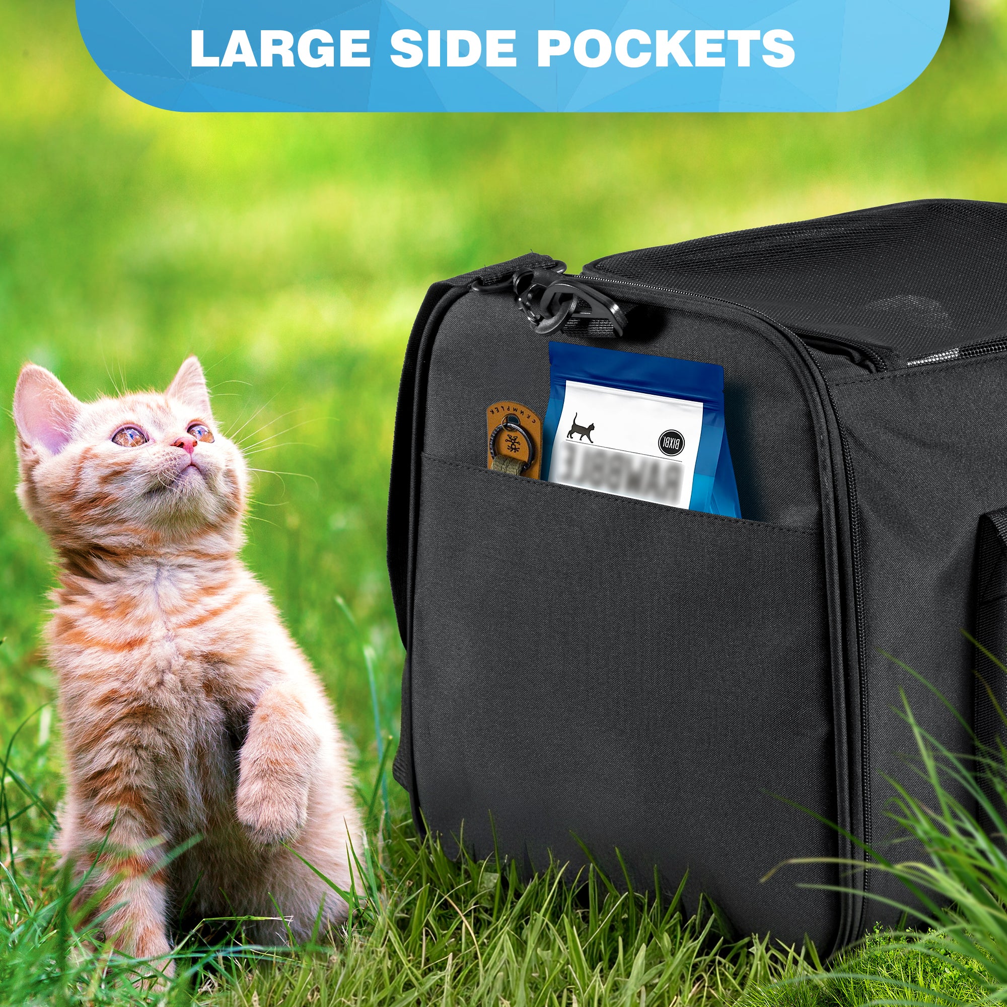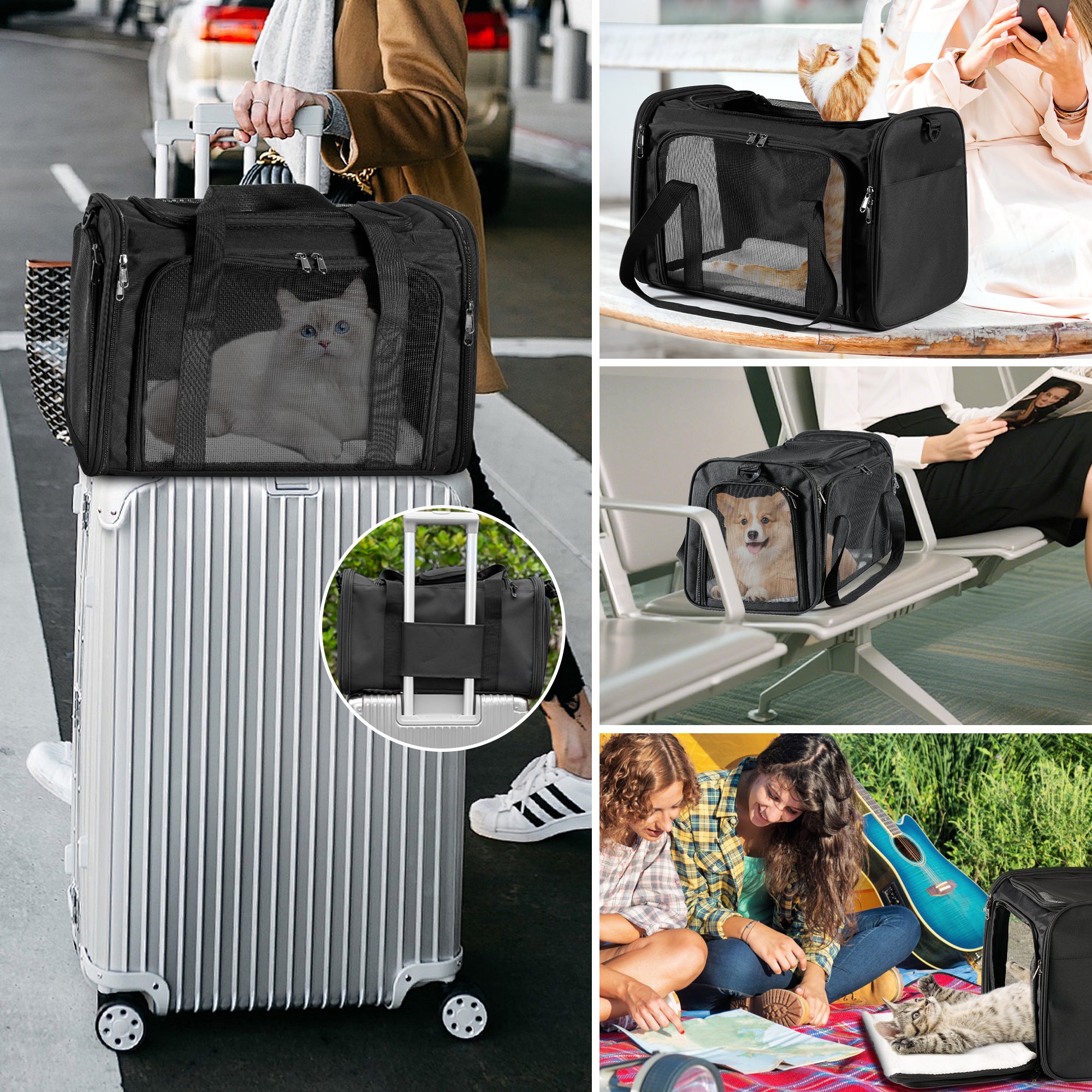 De transportbox is gemaakt van sterke 600D Oxford stof, wat zorgt voor een robuuste constructie die niet inzakt. Hierdoor behoudt de tas zijn vorm en heeft je huisdier voldoende ruimte om comfortabel te liggen of zitten. De driezijdige mesh panelen zorgen voor uitstekende ventilatie en geven je huisdier goed zicht naar buiten, wat stress vermindert tijdens het reizen.