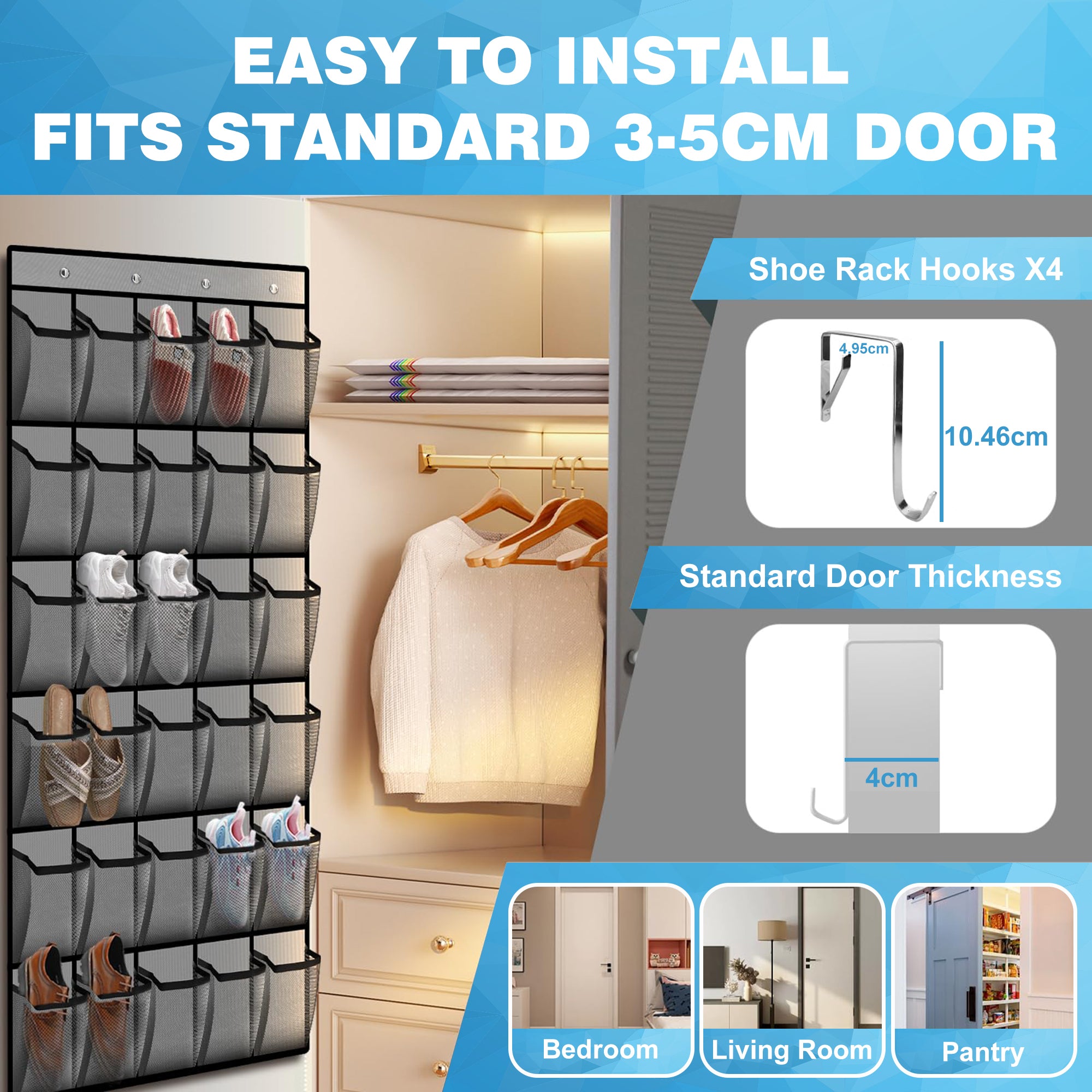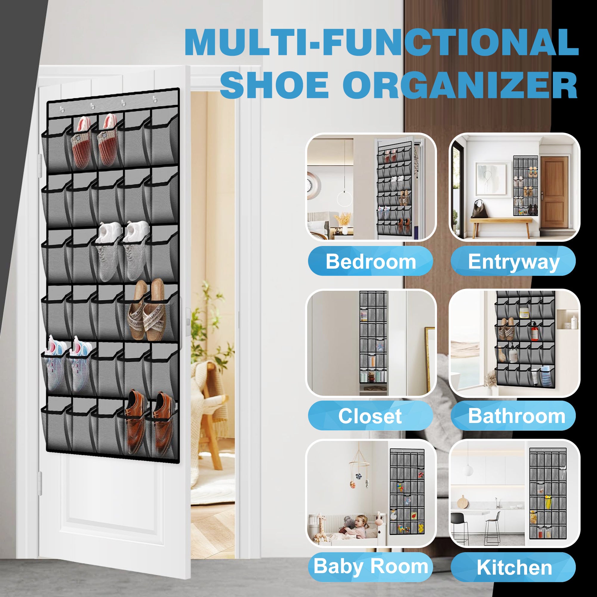 van slippers en sneakers tot hakken en kinderschoenen. Daarnaast kun je hem ook gebruiken als multifunctionele organizer in de slaapkamer, badkamer of zelfs de keuken.