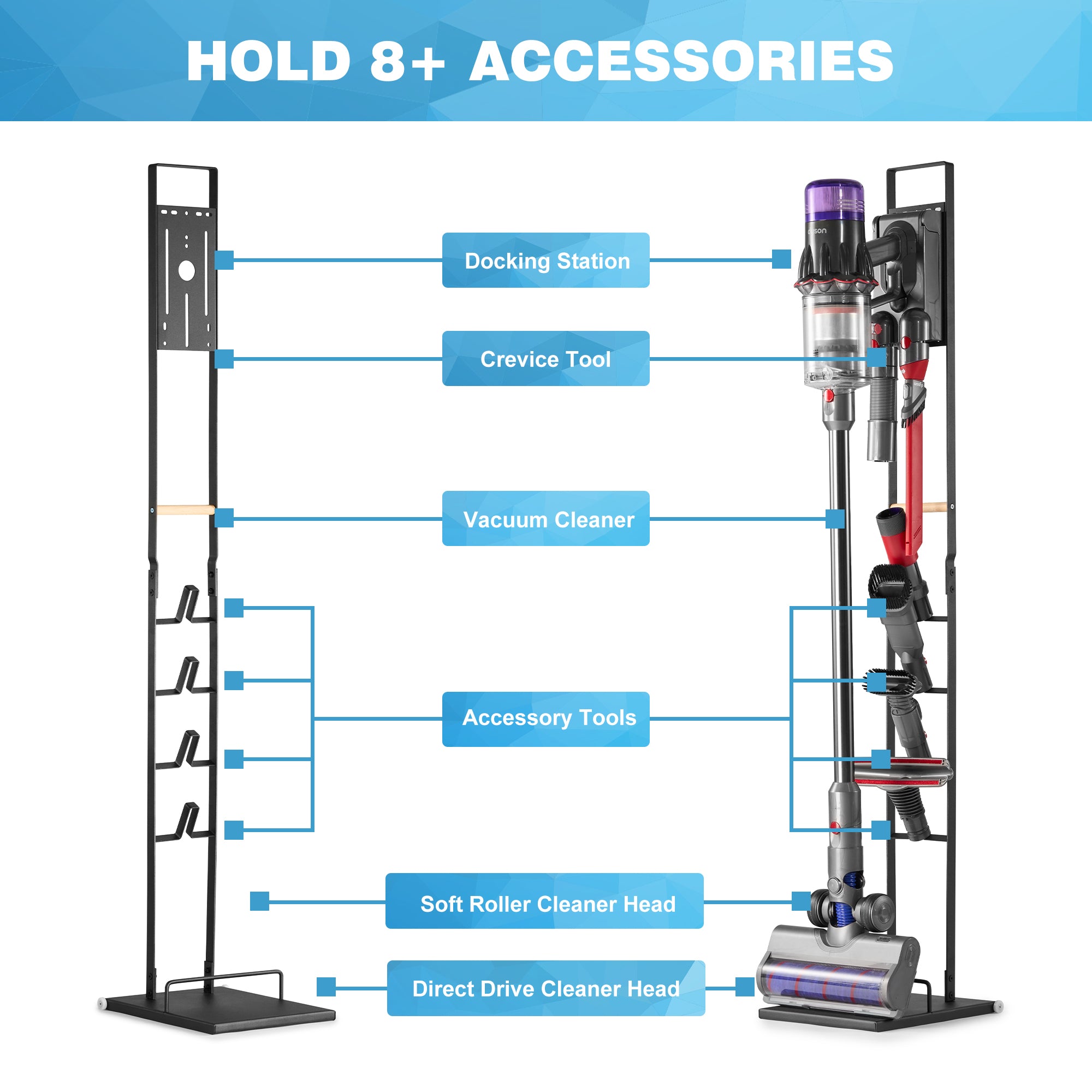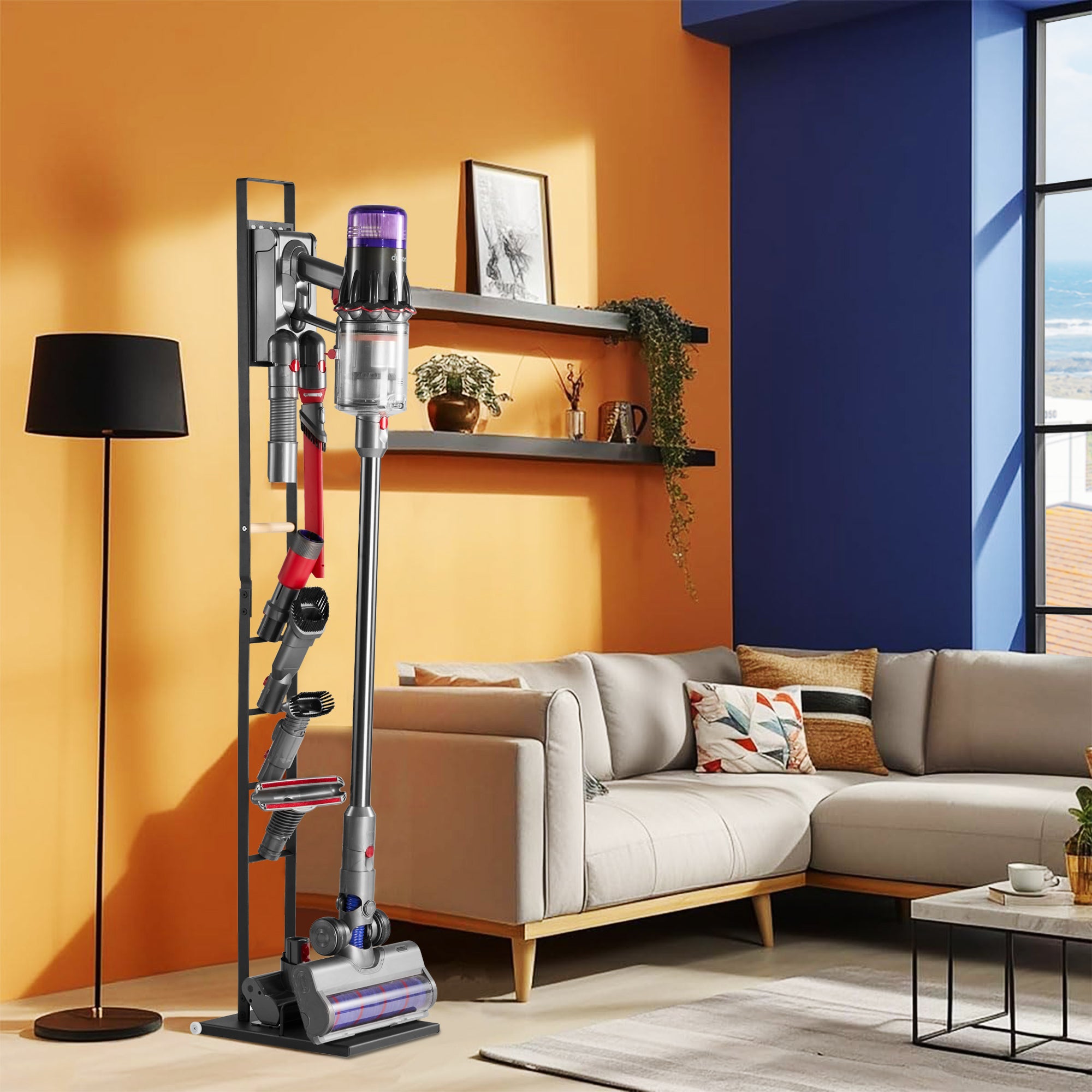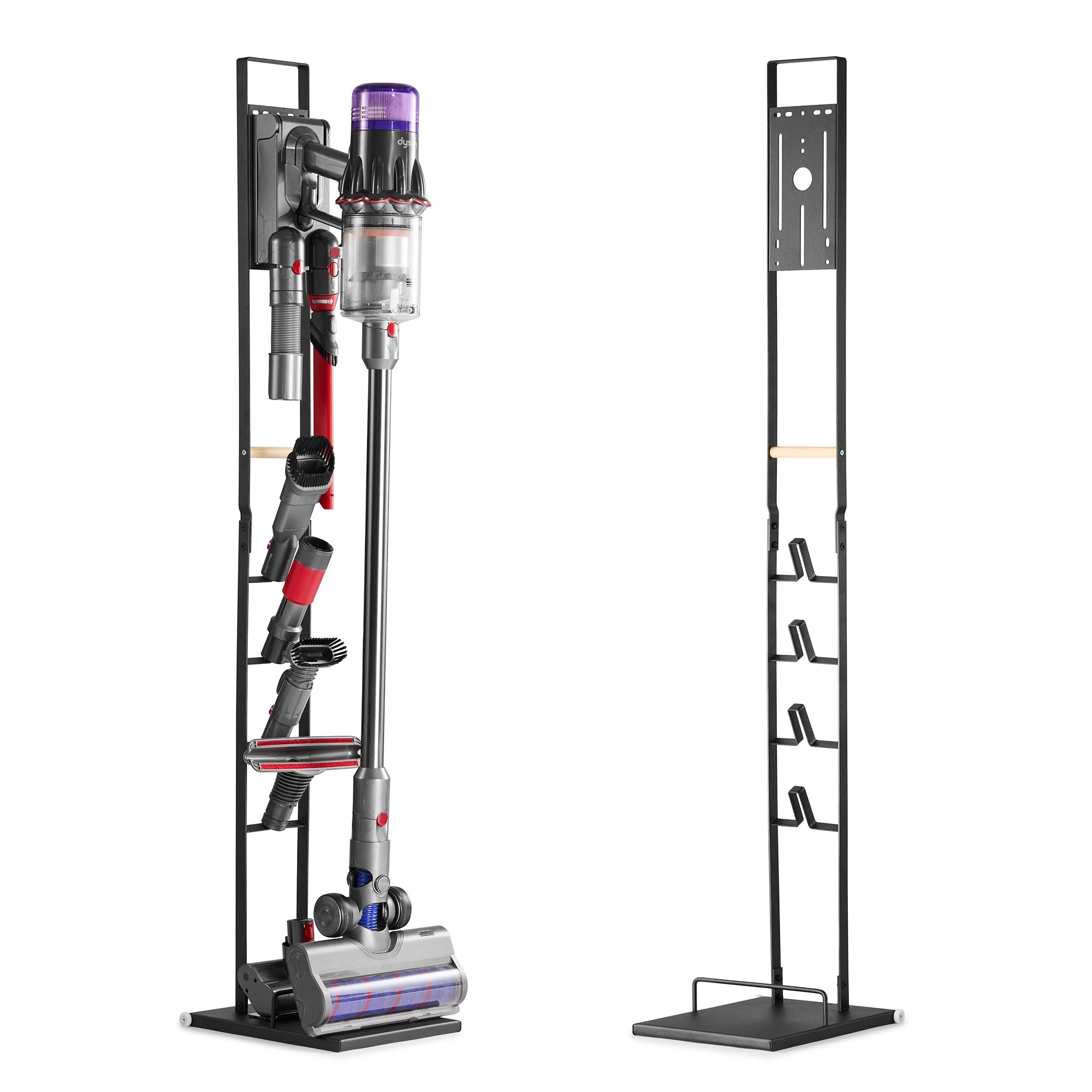 Maak kennis met de YONO Stofzuigerstandaard Universeel, dé ideale oplossing om je Dyson steelstofzuiger en accessoires netjes en georganiseerd op te bergen. Dankzij het slimme, stabiele en stijlvolle ontwerp combineert deze standaard functionaliteit, gebruiksgemak en design in één product. De YONO Stofzuigerhouder is geschikt voor vrijwel alle Dyson steelstofzuigers: V8, V10, V11, V15 en V16. Dankzij de precies geboorde gaten past je dockingstation perfect in de houder — geen gedoe, geen wiebelende constructie. De standaard is vrijstaand, dus je hoeft niet te boren. Ideaal voor huurwoningen of iedereen die zijn muren intact wil houden. De verstevigde basis zorgt ervoor dat de houder stabiel blijft staan, zelfs met alle accessoires erop. Dankzij de slijtvaste wieltjes verplaats je de standaard moeiteloos door de kamer. Onderop zitten antislip pads die je vloer beschermen tegen krassen. Bovendien is de houder voorzien van een hoogwaardig houten handvat, wat zorgt voor een luxe en warme uitstraling. De montage is eenvoudig: in drie duidelijke stappen staat de standaard stevig klaar voor gebruik.