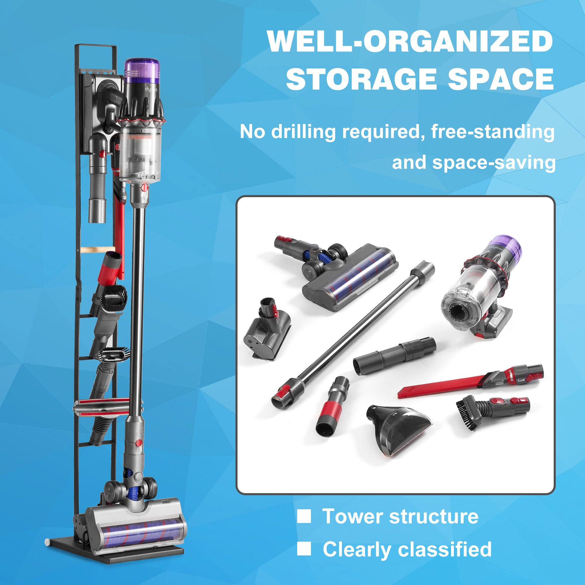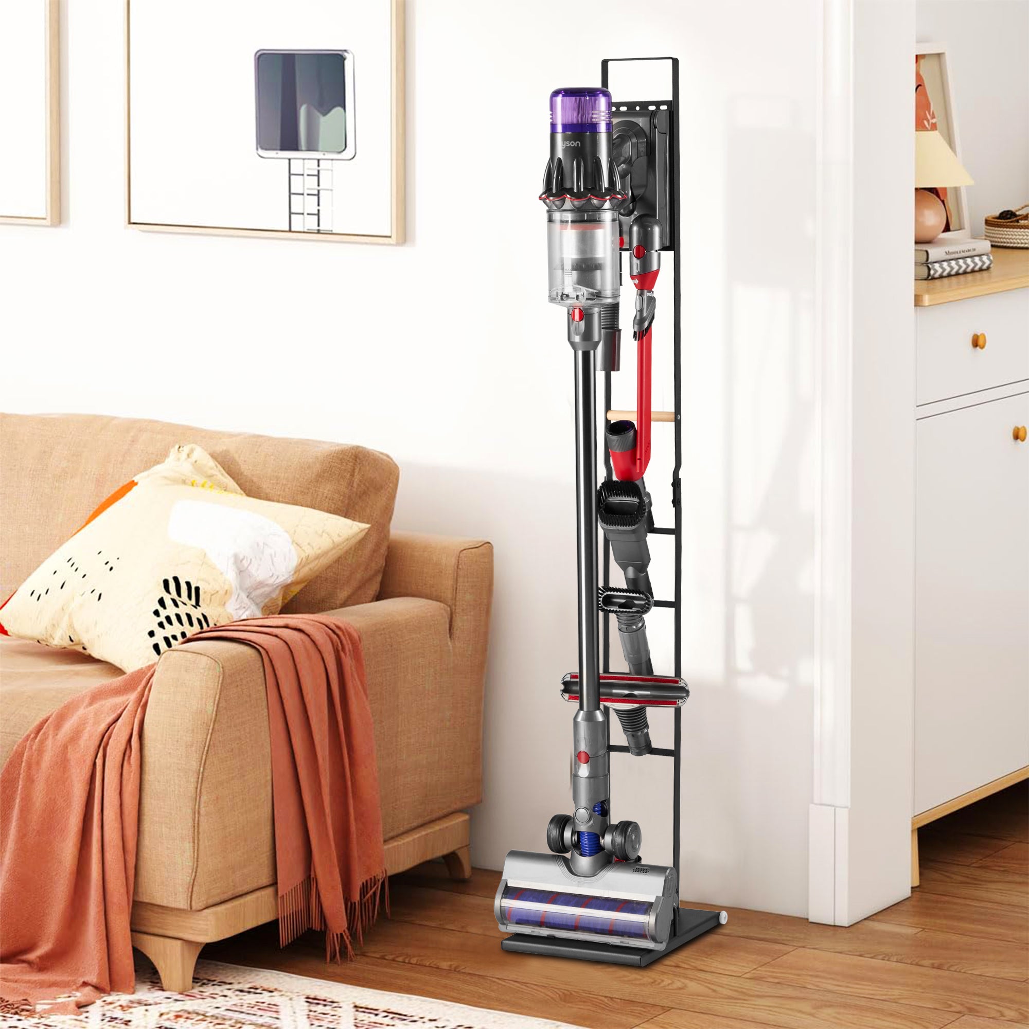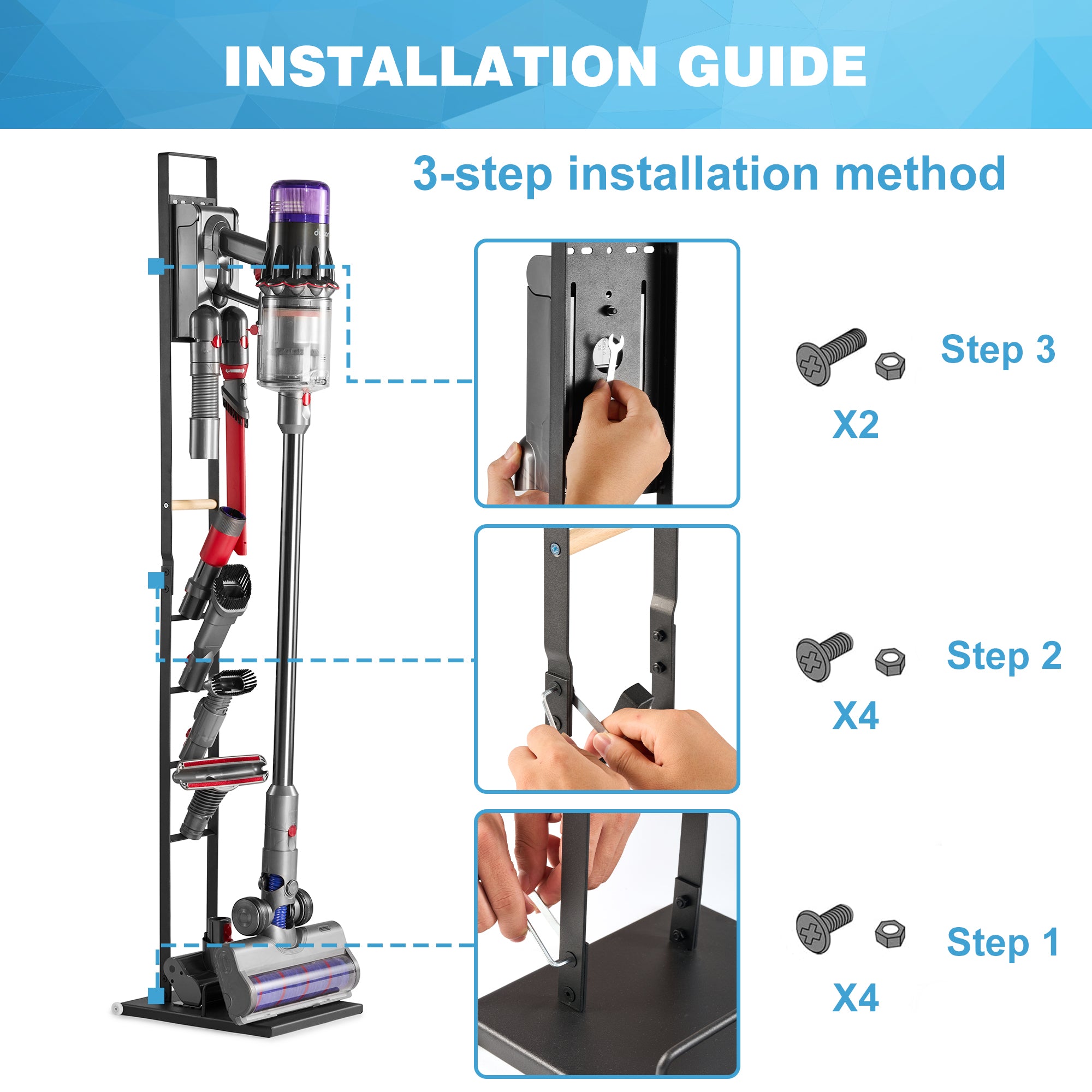 Maak kennis met de YONO Stofzuigerstandaard Universeel, dé ideale oplossing om je Dyson steelstofzuiger en accessoires netjes en georganiseerd op te bergen. Dankzij het slimme, stabiele en stijlvolle ontwerp combineert deze standaard functionaliteit, gebruiksgemak en design in één product. De YONO Stofzuigerhouder is geschikt voor vrijwel alle Dyson steelstofzuigers: V8, V10, V11, V15 en V16. Dankzij de precies geboorde gaten past je dockingstation perfect in de houder — geen gedoe, geen wiebelende constructie. De standaard is vrijstaand, dus je hoeft niet te boren. Ideaal voor huurwoningen of iedereen die zijn muren intact wil houden. De verstevigde basis zorgt ervoor dat de houder stabiel blijft staan, zelfs met alle accessoires erop. Dankzij de slijtvaste wieltjes verplaats je de standaard moeiteloos door de kamer. Onderop zitten antislip pads die je vloer beschermen tegen krassen. Bovendien is de houder voorzien van een hoogwaardig houten handvat, wat zorgt voor een luxe en warme uitstraling. De montage is eenvoudig: in drie duidelijke stappen staat de standaard stevig klaar voor gebruik.